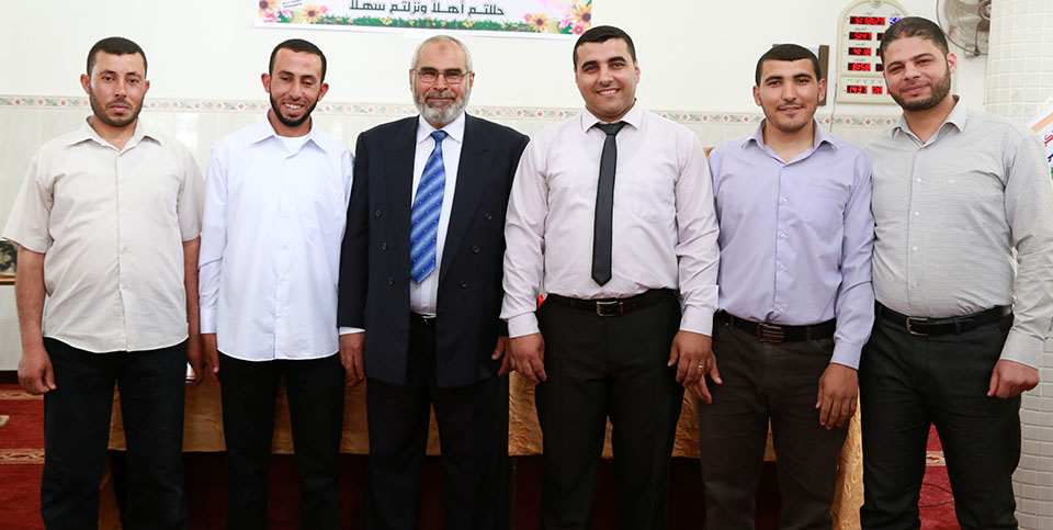 الشيخ يوسف الأسطل، د. زكريا يحيى الأسطل (والد العروس)، العريس، الحاج أمين الأسطل(خال العريس)