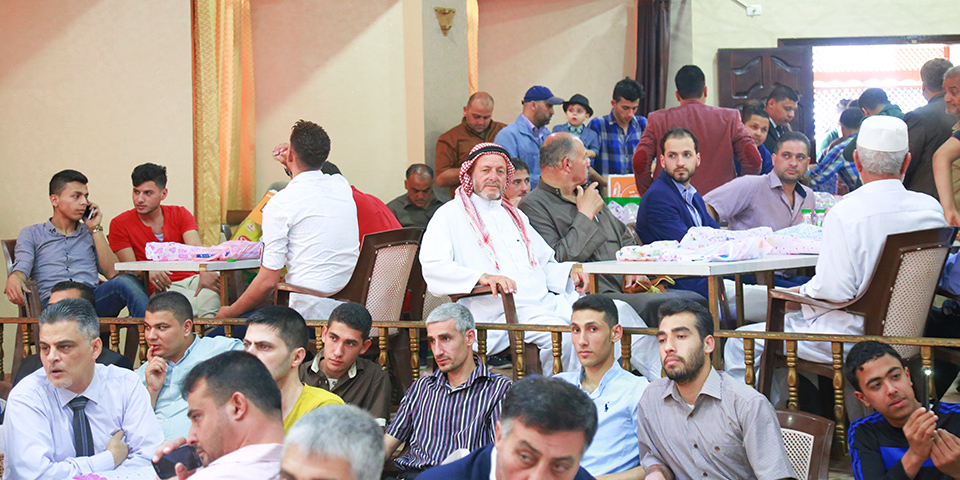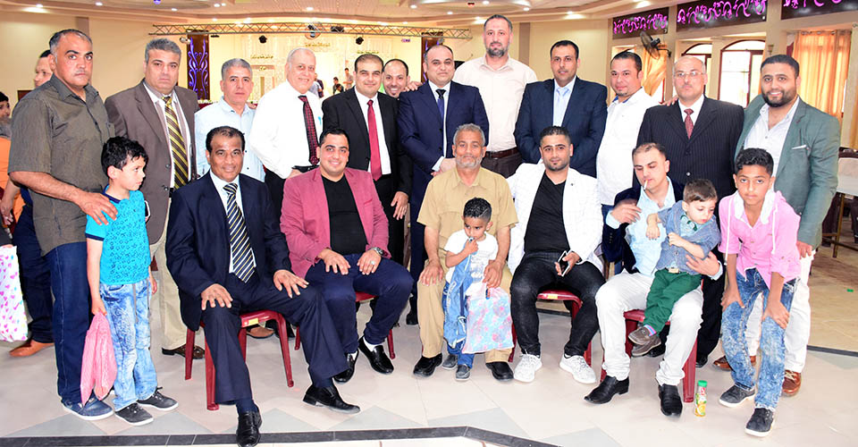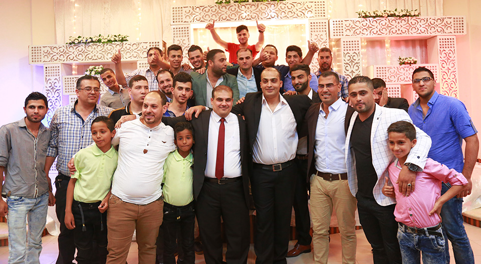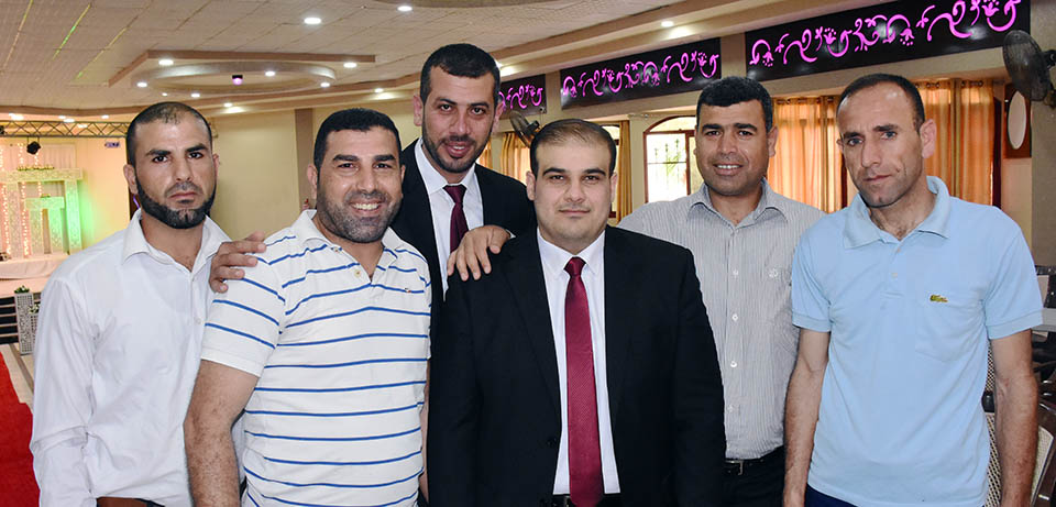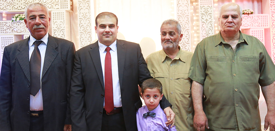 أ. مروان(عم العريس)، د. رفيع الازعر(خال العريس)، أ. عمر عودة الأغا، ألعريس، والد العروس