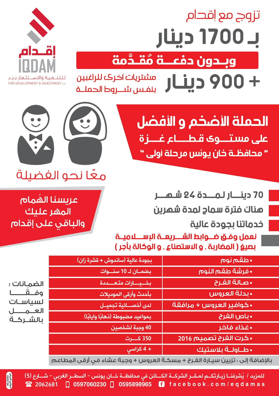 بدون دفعة مقدمة بـ 1700 دينار أردني تزوج مع إقدام ...