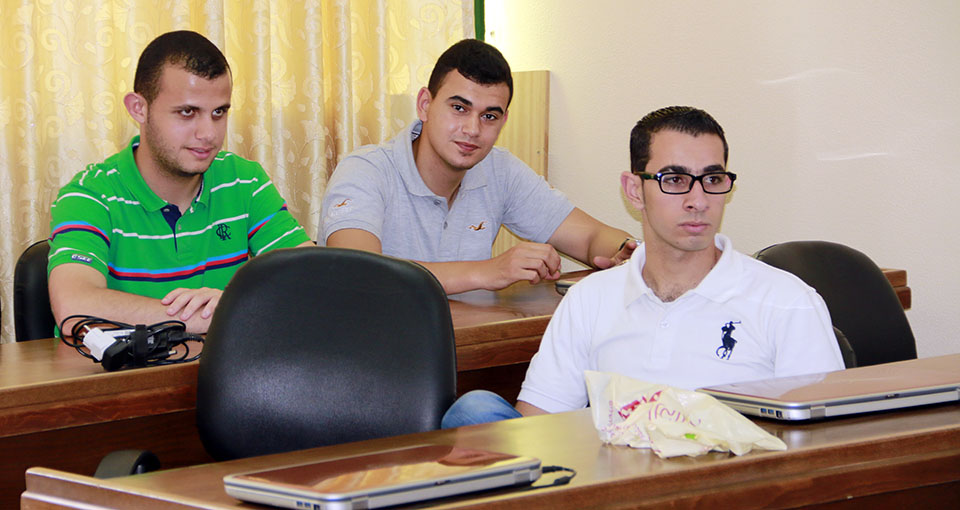 م. سليم بيان الأغا، م. وسام جبريل، م. جعفر محمد الأغا(معيد بقسم هندسة الحاسوب)، م. عبدالناصر عبدالهادي(مشرف المشروع ومدير وحدة شؤون تكنولوجيا المعلومات بالجامعة الإسلامية)