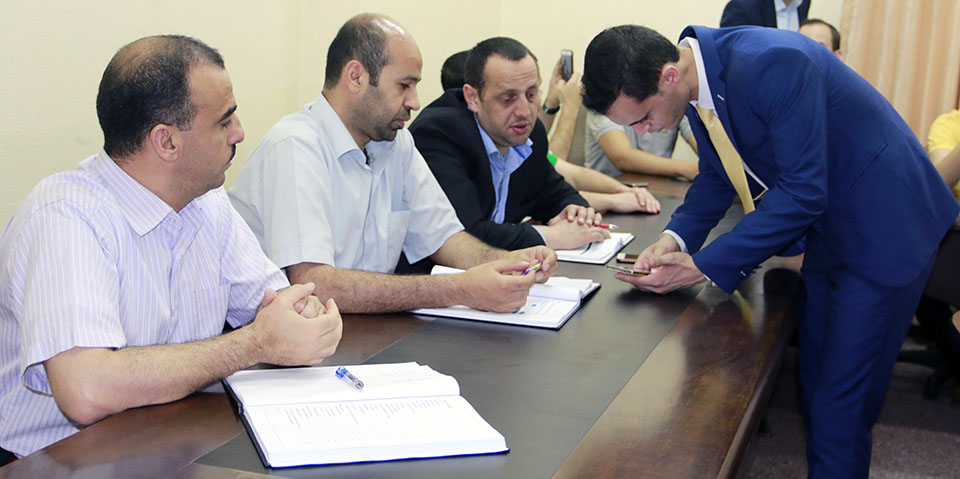 أ. محمد أرسلان الأغا، م. جعفر الأغا، أ. مهند مشتهى، أ. محمد مشتهى، عبدالمعطي ياغي، أ. أحمد الأغا، قصي جراد، محمد العشي، أ. محمد ديب، إسماعيل عزيزة