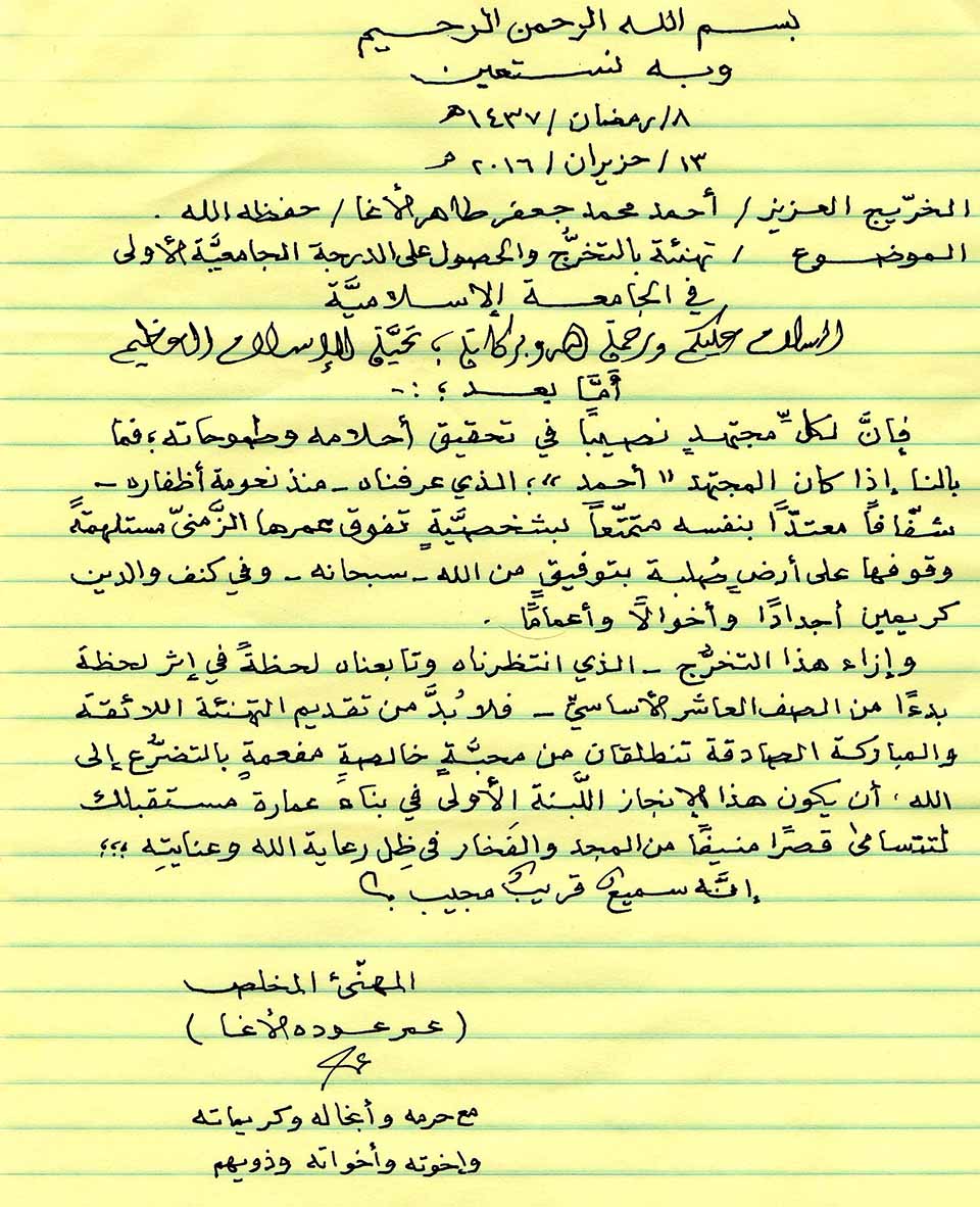 للطالب أحمد محمد جعفر الأغا، وألف مبارك