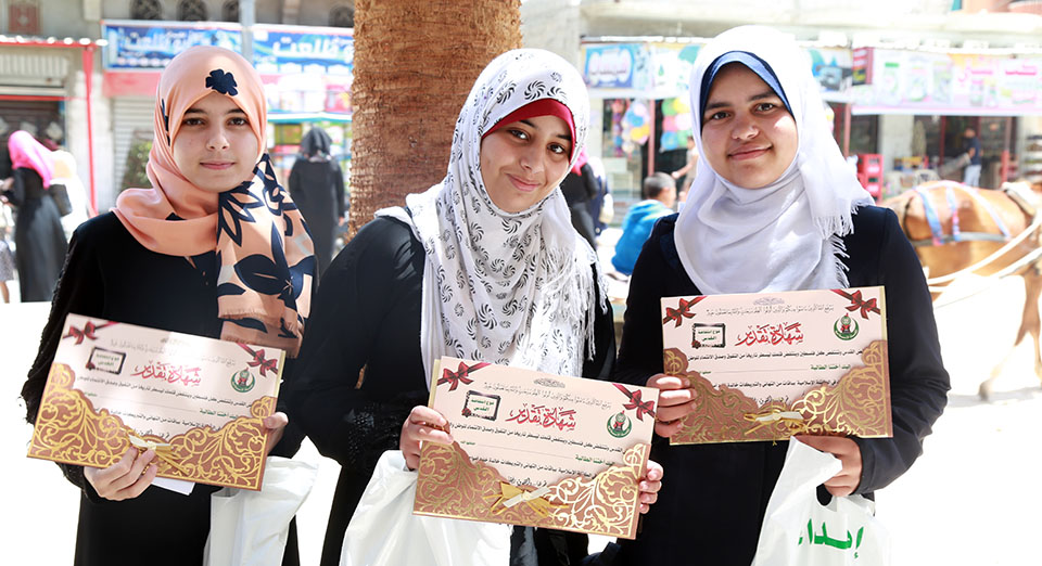 خان يونس- صالة دريم- الخميس 09-06-2016- الكتلة الاسلامية في محافظة خان يونس تواصل فعاليات تكريم المتفوقات فوج انتفاضة القدس، وتنظم احتفالاً في منطقة القرارة لتكريم المتفوقات بحضور القيادية في حركة حماس أ.رجاء الحلبي والأخوات في ادارية الحركة والكتلة الاسلامية في المنطقة.