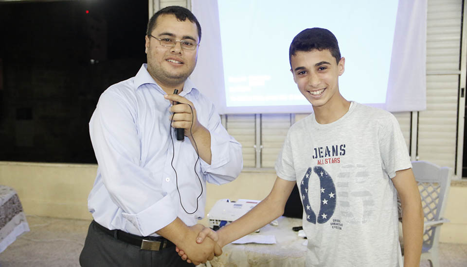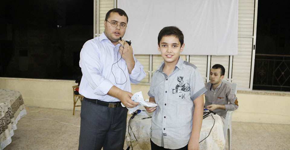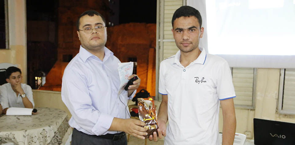 أحمد مؤنس وفاز بهدية من شركة القدوة للاتصالات ويمثلها م.محمد منير الأغا