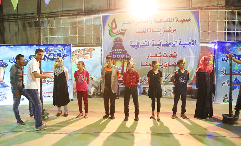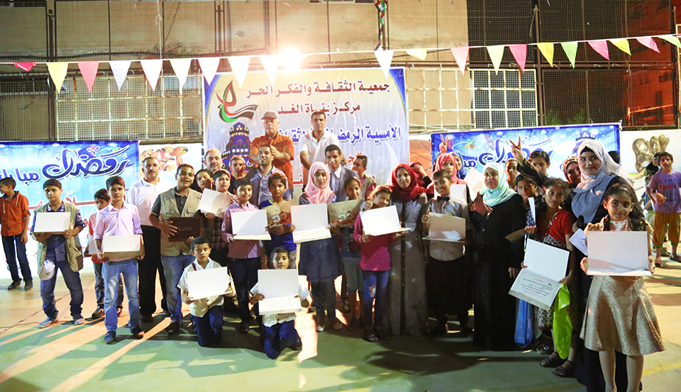 في اجواء عائلية رمضانية مبهجة اتسمت بالحميمية ، احتضن مركز بناة الغد التابع لجمعية الثقافة والفكر الحر، فعاليات الامسية الرمضانية الثقافية الترفيهية ، التي نظمها بمقره غرب محافظة خانيونس لعائلات المحافظة ، وحصلة المبدعة عائشة الاغا علي المركز الاول بالمسابقة فنية رمضانية" رمضان آرت" اشترك فيها أكثر من 45 متسابق