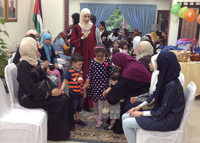 أقامت سفارة دولة فلسطين لدى كوالالمبور حفل استقبال لابناء الجالية الفلسطينية في ماليزيا، و ذلك في البيت الفلسطيني، مقر إقامة السفير الفلسطيني لدى كوالالمبور، حيث تبادل سفير فلسطين لدى ماليزيا و بروناي و تايلاند و الفلبين و المالديف، د.أنور الأغا و حرمه و طاقم السفارة، التهاني التبريكات مع أبناء الجالية، الذين تجمعوا في البيت الفلسطيني، بما فيهم العائلات و الأطفال و الطلبة، في جو ساده الود و المحبة و العلاقات الطيبة، التي تعكس عادات و تقاليد شعبنا و ثقافته الأصيلة، المبنية على الود و الترابط و التلاحم، كأبناء الاسرة الواحدة.