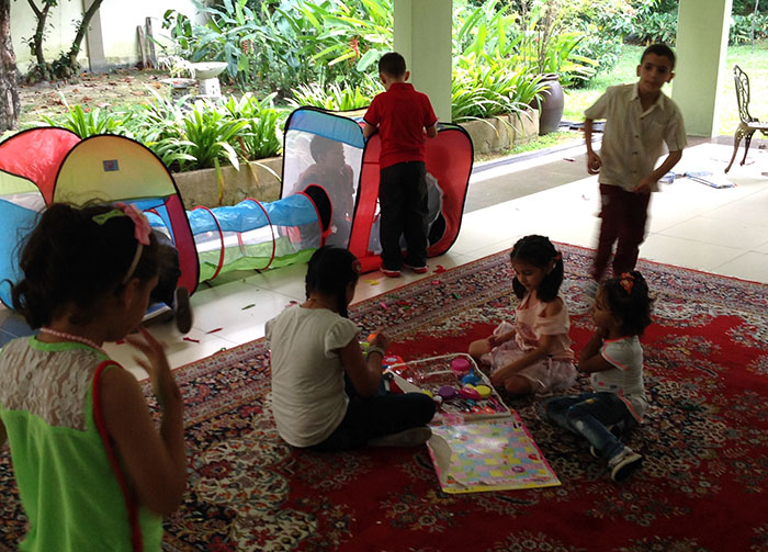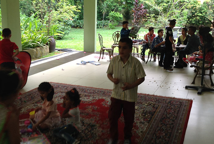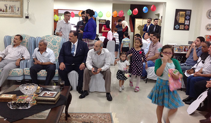 و خلال ذلك، فقد تم تقديم الحلوى الفلسطينية و المشروبات لابناء الجالية، و قدمت حرم السفير الهدايا و الألعاب للأطفال، في جو بهيج تجلى خلاله الأطفال وهم يلعبون و يمرحون داخل البيت الفلسطيني و في حديقته.