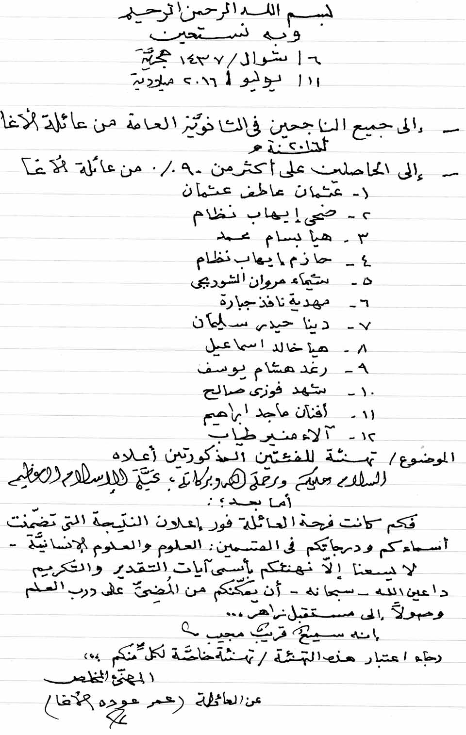 تهنئة مقدمة من أ. عمرعودة الأغا