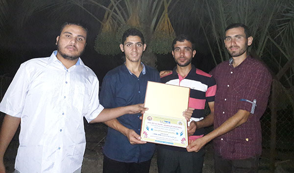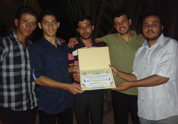 السطر الغربي- ديوان أبو عاطف تقديم التهاني للمتفوف عثمان عاطف الأغا الحاصل على معدل 99.1 والناجحة أية نزيه محمد الأغا