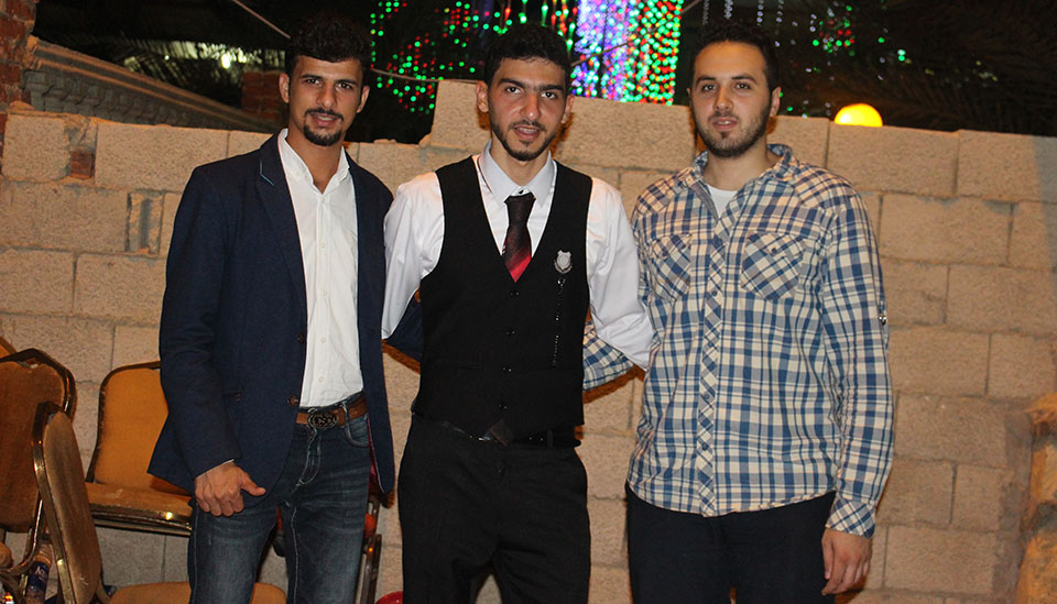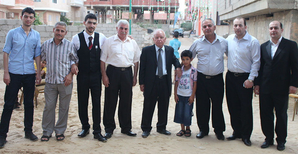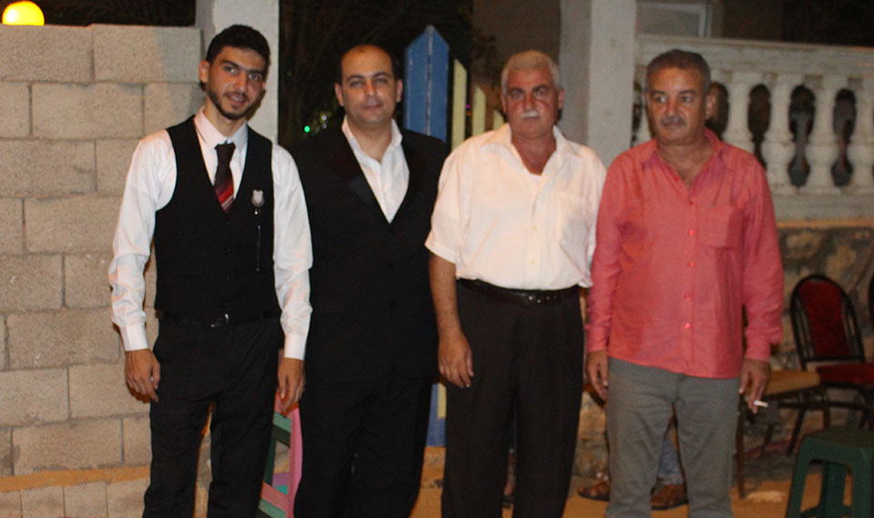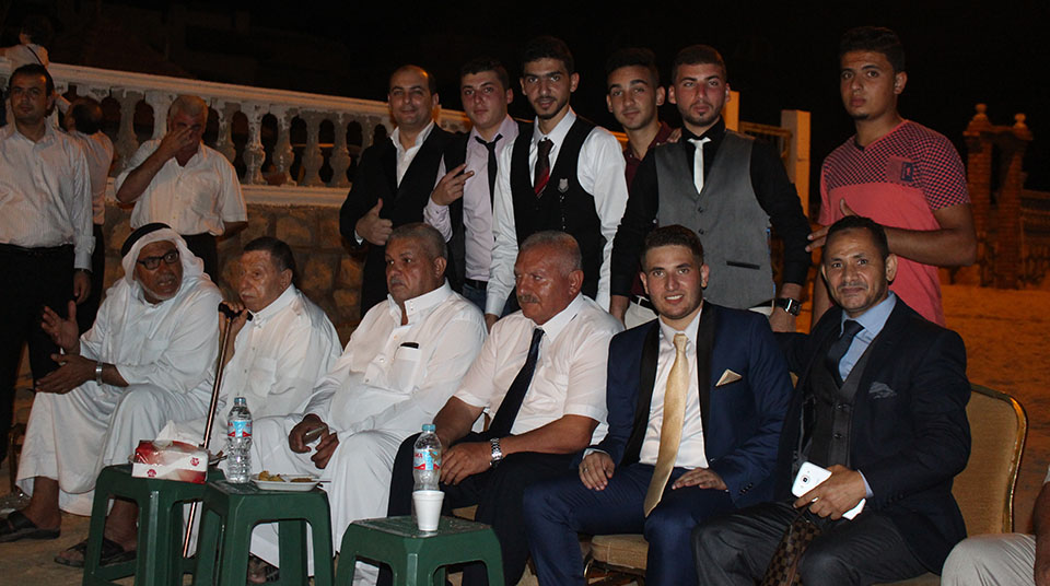 حسام الدين محمد حسين الأغا , معتز محمد حسين الأغا , إياد زاهد الأغا وابنه أحمد , كامل زاهد الأغا , نعيم أحمد حسين الأغا , نايف محمد نايف الأغا ( شقيق العروس ) , ممدوح عاشور برهوم , محمد كامل زاهد الأغا