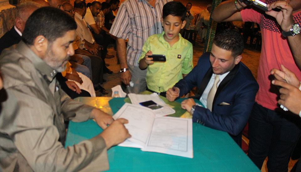 من مراسم عقد القران والد العروس ، المأذون ، العريس