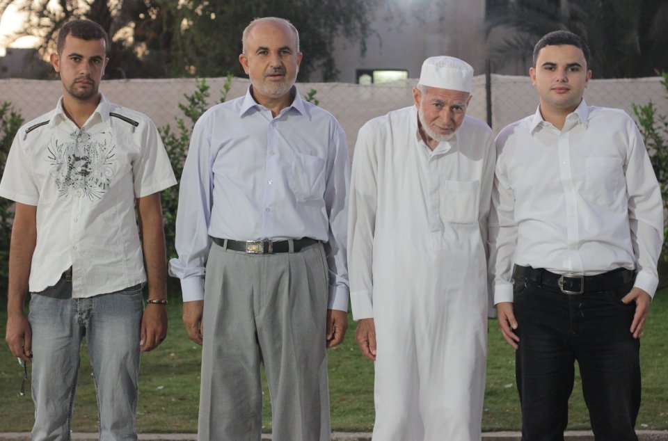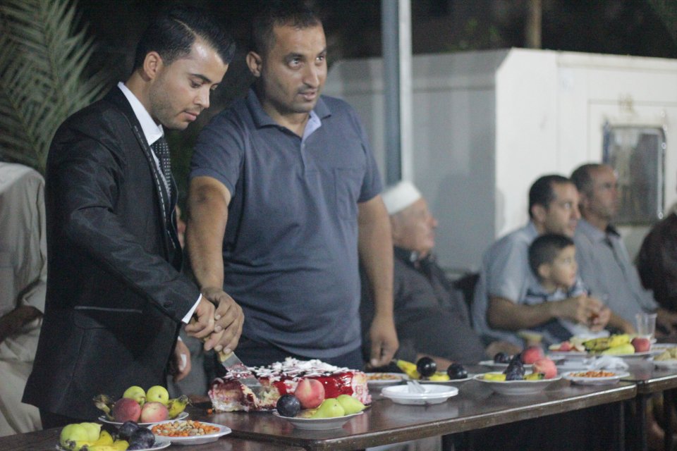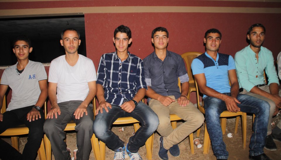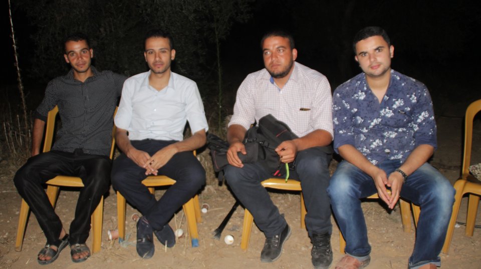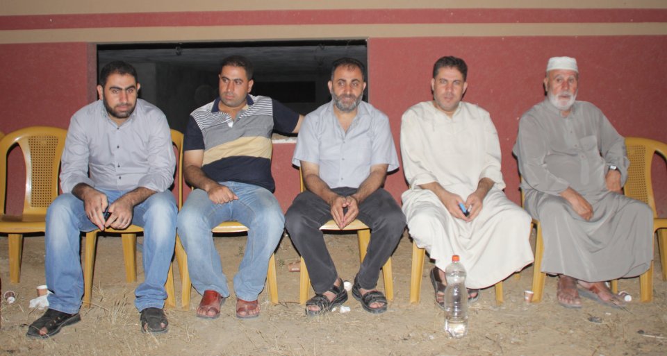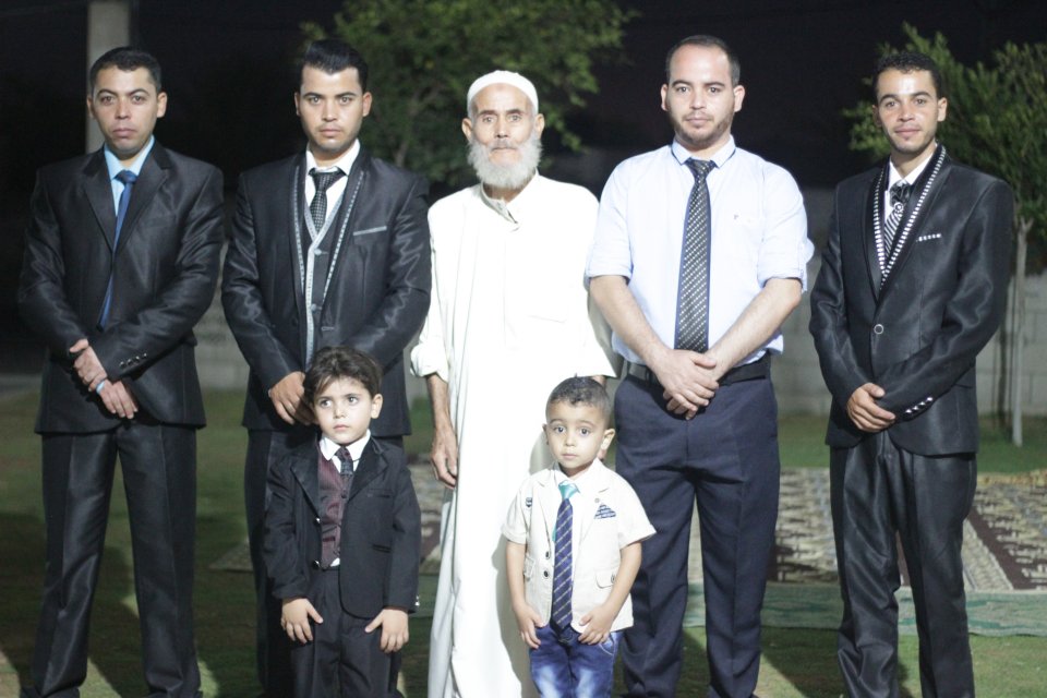 علاء سامي، يحيى ياسين(ابن عم العريس)، صديق العريس، يوسف عمرو(ابن عم العريس)، العريس، أسعد الأسطل(زوج شقيقة العريس)، والد العريس،