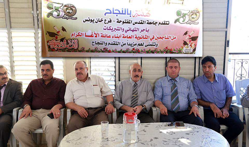 خان يونس- ديوان العائلة- القلعة- الجمعة 22.07.2016- وفد من جامعة القدس المفتوحة يقوم بزيارة ديوان العائلة، وتقديم التهاني لطلبة الثانوية العامة الناجحين لعام 2016 من أبناء العائلة