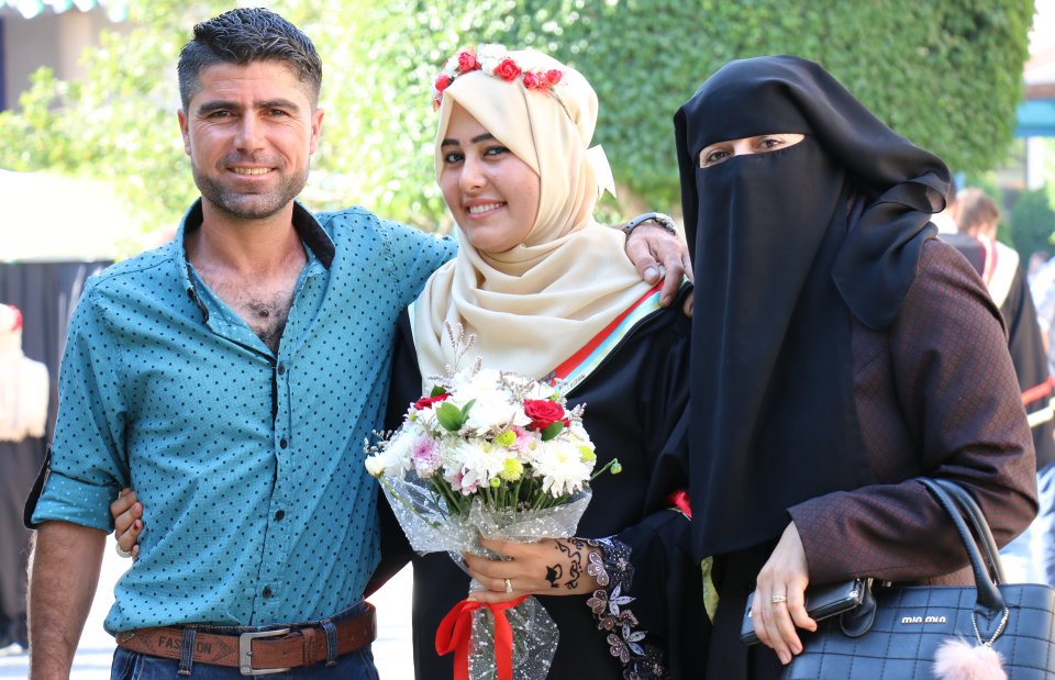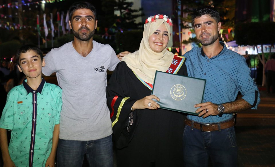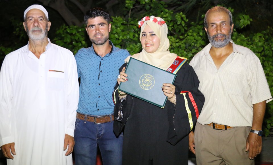 الخريجة نجوى تتوسط أخوالها مصطفى وعمر