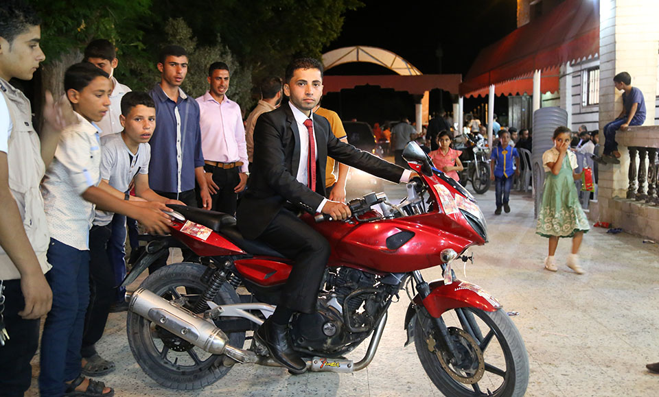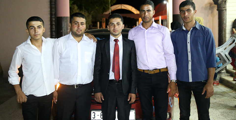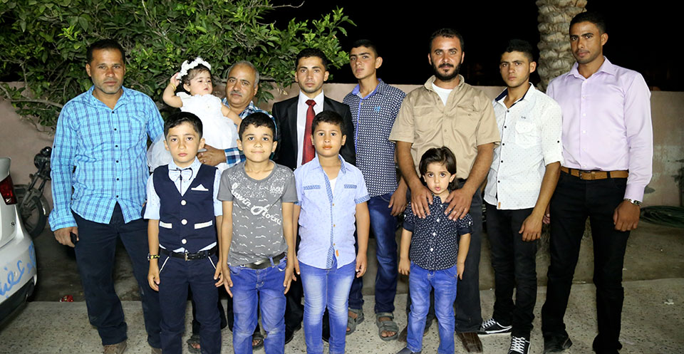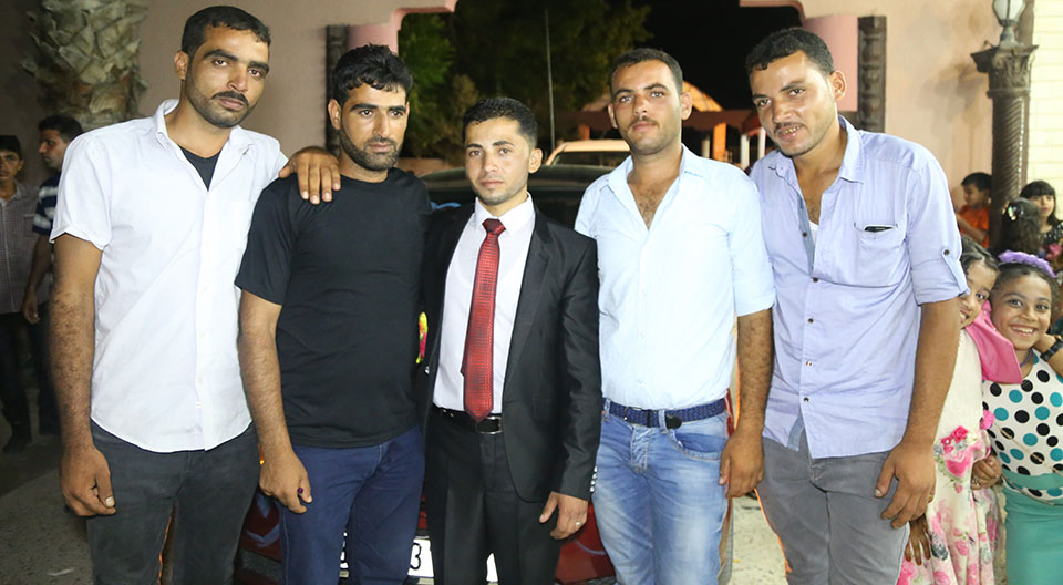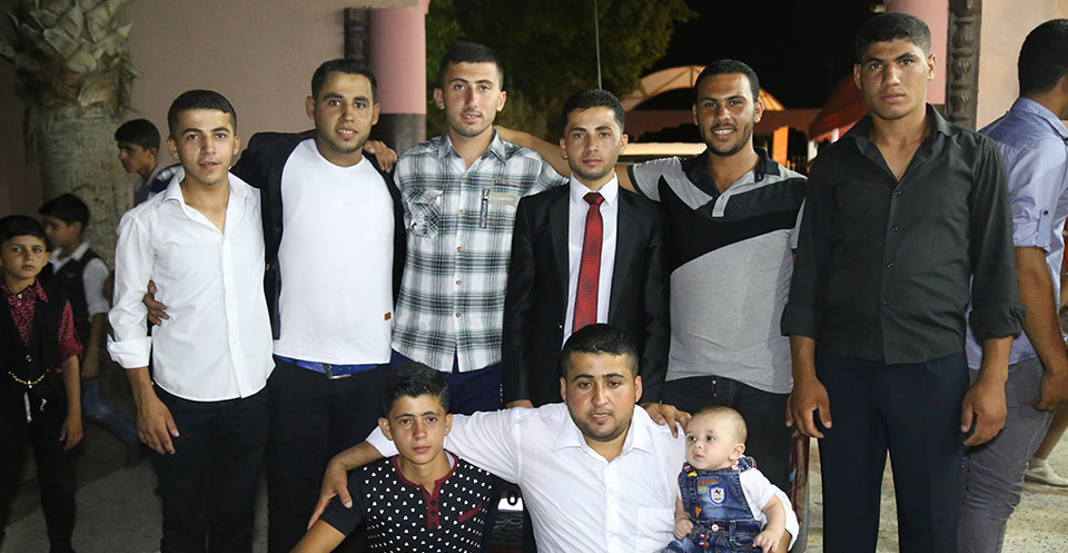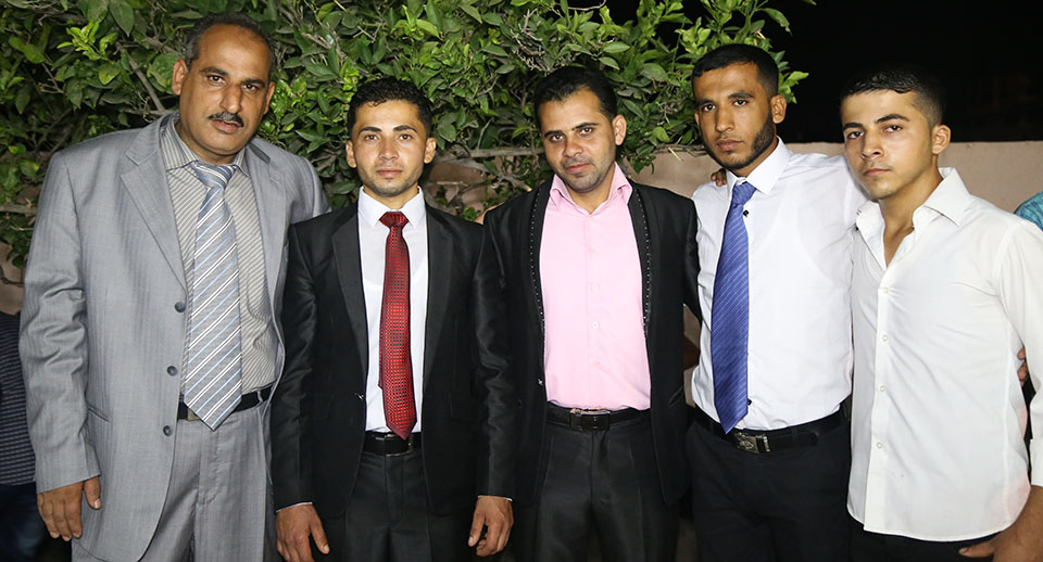 منير عايش الأغا، فادي أسامة الأغا، عبدالناصر خالد الأغا، العريس، والد العريس، محمد عايش الأغا