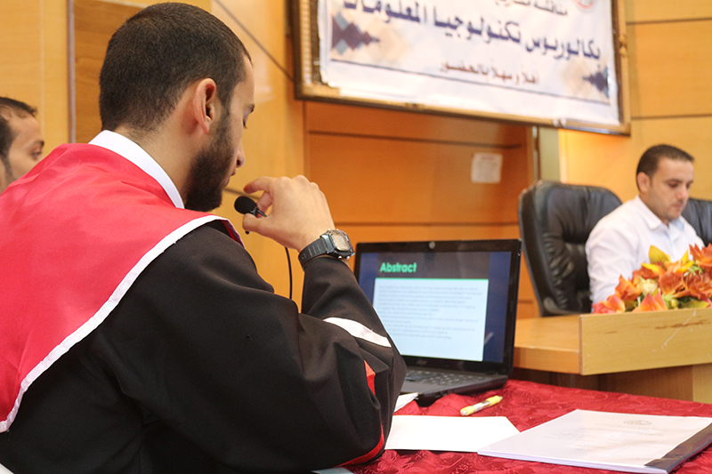 مناقشة مشروع تخرج الطالب علي عمر يوسف الأغا .