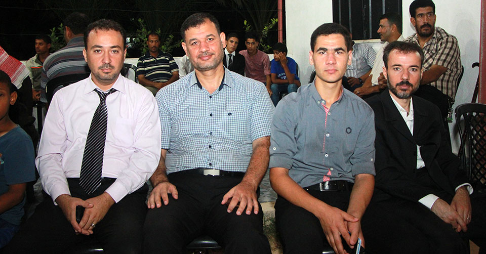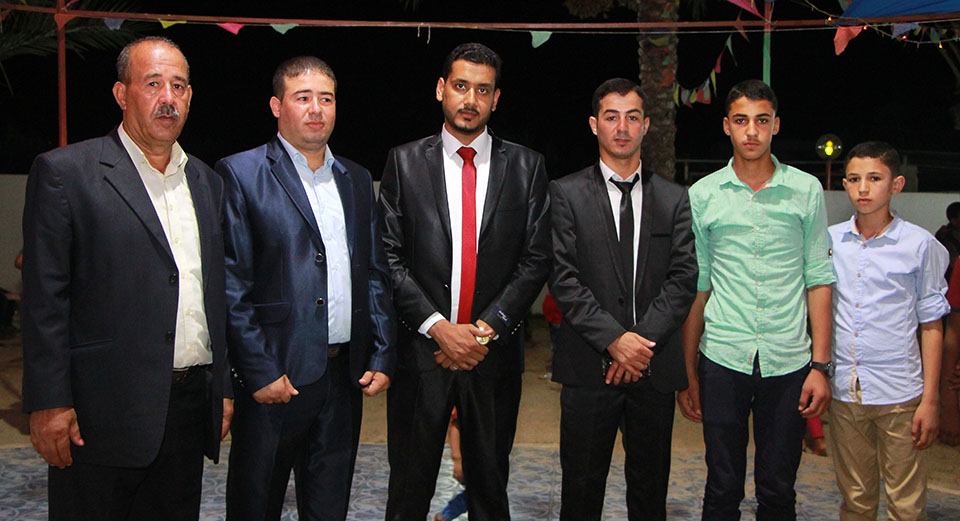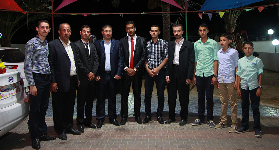 تامر سليم الأغأ وشقيقه طاهر، أ.محمد(شقيق العروس)، العريس، أ.نعيم(شقيق العروس)، والد العروس