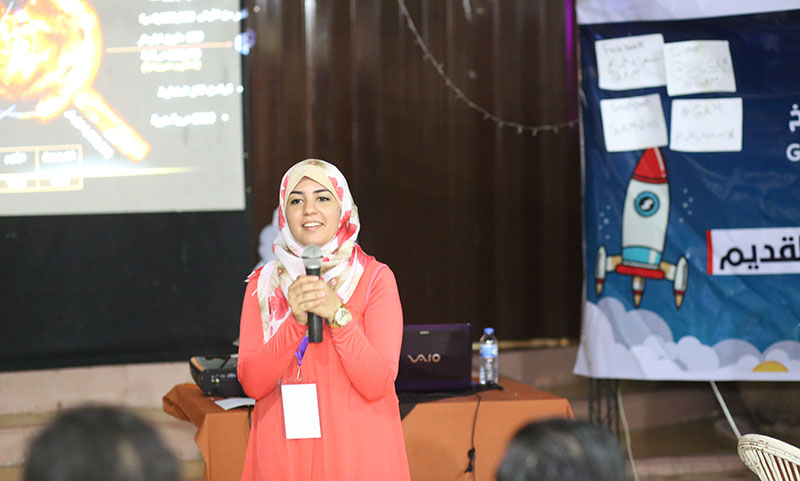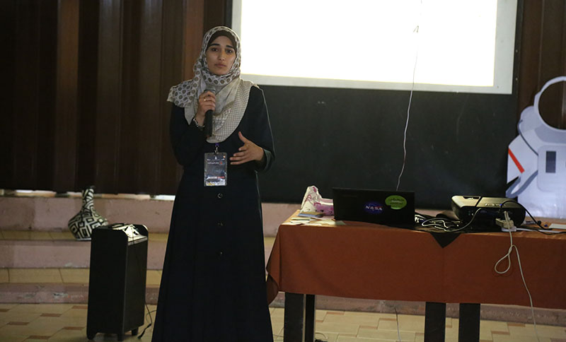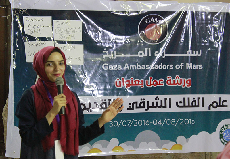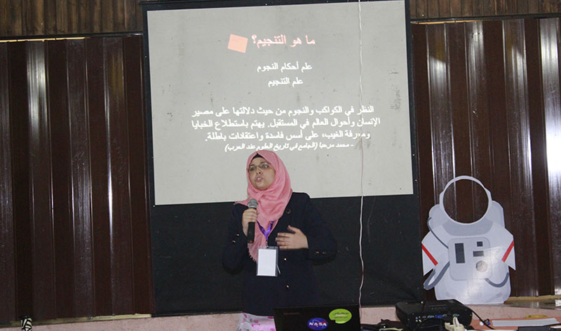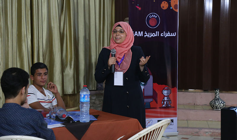 وفي كلمة للمدربة وسفيرة المريخ أ. نور بسام الأغا، وجهتها للفريق أن العلم لا حدود له، ويجب علينا أن نهتم بعلم الفلك العربي والإسلامي، ومراحل تطوره.