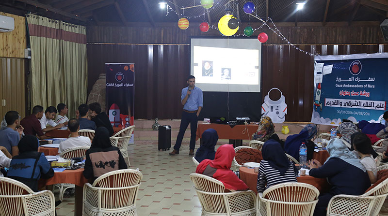 أنهى مشروع سفراء المريخ المرحلة الأولى من برامجه في قطاع غزة، ويهدف المشروع لنشر التوعية الفلكية في المجتمع، حيث تقدمت الفكرة إلى مسابقة الأفكار الفلكية على مستوى العالم ليتم تمويلها من اتحاد الفلك الدولي وتم اختيار الفكرة ضمن أفضل سبعة أفكار على مستوى العالم، ويعتبر المشروع الأول من نوعه ومجاله في فلسطين، وذلك بمساعدة و دعم دكتور سليمان بركة، حامل كرسي اليونيسكو لعلوم الفلك و الفضاء في فلسطين.