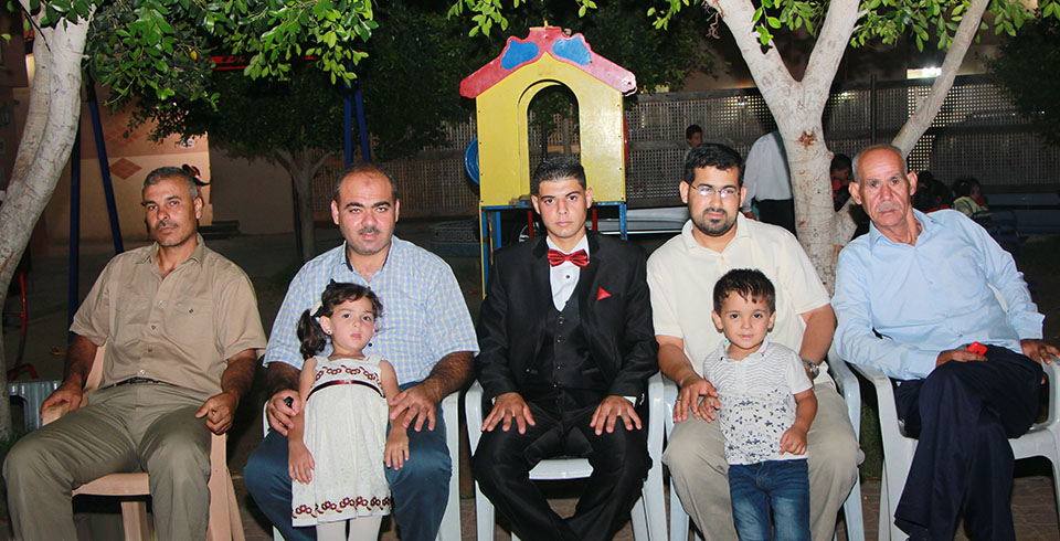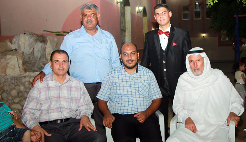 أ.عبد المجيد قاسم الاغا(جد العريس)، العريس، أ.أحمد الأسطل(زوج خالة العريس)، والد العريس، أ.أكمل حاسي الأغا(زوج خالة العريس)