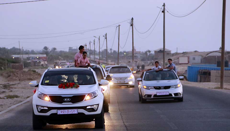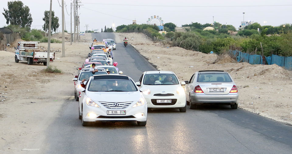 خلال مرور موكب الزفة- طريق الرشيد - دير البلح