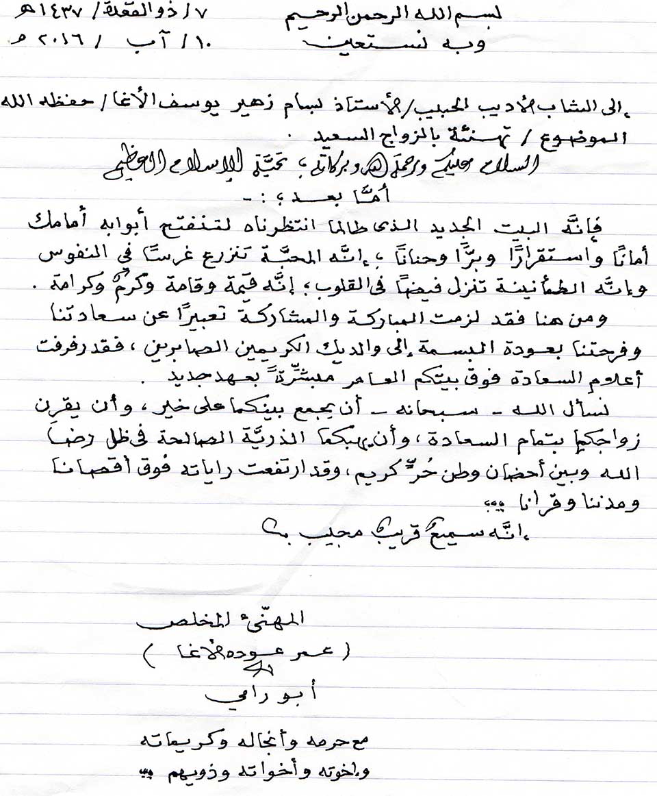 أ. جهاد الاغا، العريس، أ. علي(عم العريس)، والد العريس، والد العروس