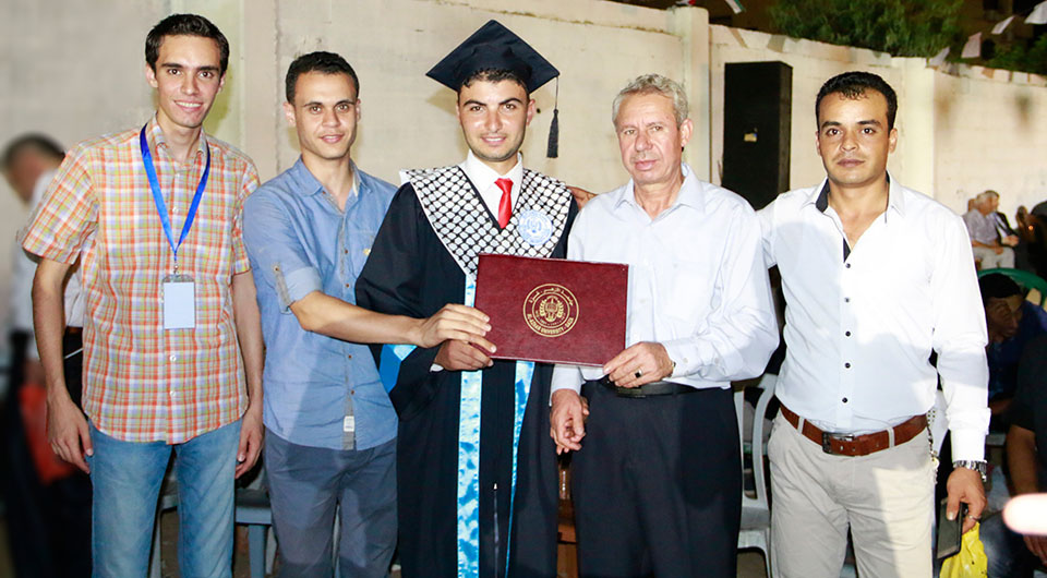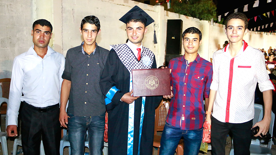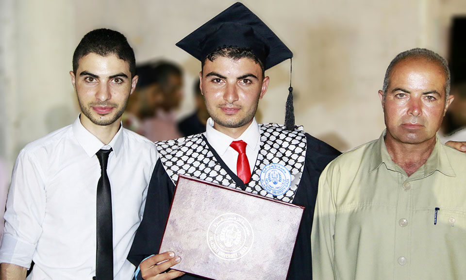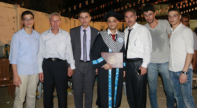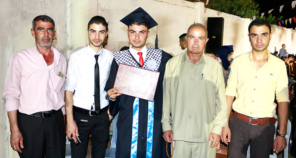 الرئيسة/تكريم/جامعة الأزهر- تخرج كوكبة من أبناء العائلة تكريم جامعة الأزهر- تخرج كوكبة من أبناء العائلة تاريخ النشر : الثلاثاء | 16-08-2016 | 17:20 6232 جامعة الأزهر- تخرج كوكبة من أبناء العائلةوضاح أحمد الأغا، وعلاء سامي الأغا، و محمد إيهاب نظام الأغا اضغط هنا للتواصل أو التعرف على الأستاذ وضاح أحمد بدوي أحمد بدوي أحمد إبراهيم(بدوي) الأغا يمكنك تلقي أحدث الأخبار أول بأول بانضمامك لإحدى مجموعات الواتساب الخاصة بالعائلة من خلال الضغط هنـا اظهر المزيد