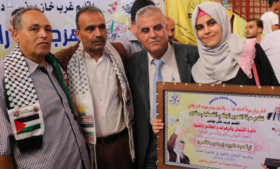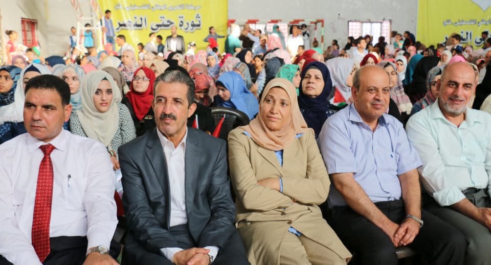 وبحضور أكثر من 6000 شخص وهم أبناء الحركة وفي استفتاء شعبي لحركة فتح حيث حضر الاحتفال عدد كبير من الكادر الفتحاوي المتقدم وعلى رأسهم الأخت المناضلة د. أمال حمد عضو اللجنة المركزية لحركة فتح والأخ المناضل فضل عرندس مفوض دائرة الأشبال والزهرات في الهيئة القيادية العليا ومقرر الدائرة بالمحافظات الجنوبية الأخ /بسام ابوعلي وامناء سر الأقاليم وقيادة الأقاليم والمناطق التنظيمية وأعضاء المكاتب الحركية وممثلي فصائل العمل الوطني والوجهاء والمخاتير وعدد كبير من الكوادر والقيادات الفتحاوية في محافظة خانيونس