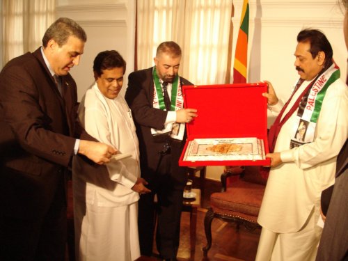 و قال د. أنـور الأغـا سفير فلسطين لدى سريلانكا و المالديف أن وزير الأوقاف نقل تحيات السيد الرئيس محمود عباس و تحيات السيد رئيس الوزراء د. سلام فياض إلى الرئيس السريلانكي و الشعب السريلانكي الصديق، و قدم له الشكر باسم السيد الرئيس على مواقف الحكومة السريلانكية الداعمة للقضية الفلسطينية و لشعبنا الفلسطيني، خاصة في ظل الظروف الصعبة التي يمر بها شعبنا مع إستمرارالممارسات الوحشية لقوات الإحتلال الإسرائيلي.