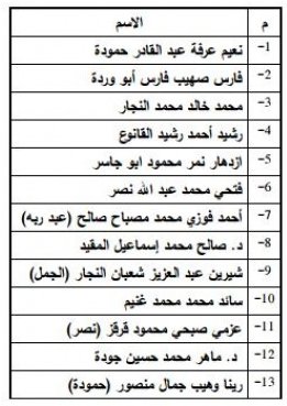 - م. عزة العجلة (بكالوريوس هندسة مدنية، بكالوريوس تنمية بشرية، ومدير شبكة المؤسسات النسائية في قطاع غزة).