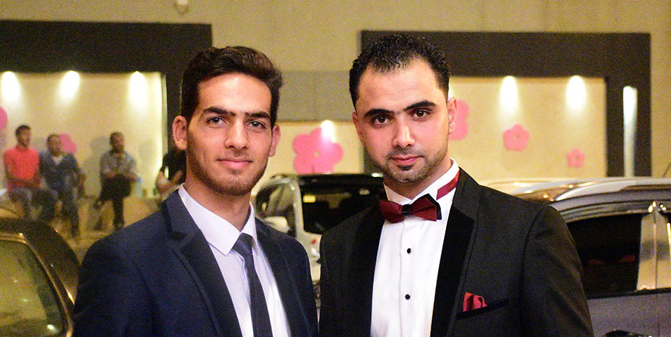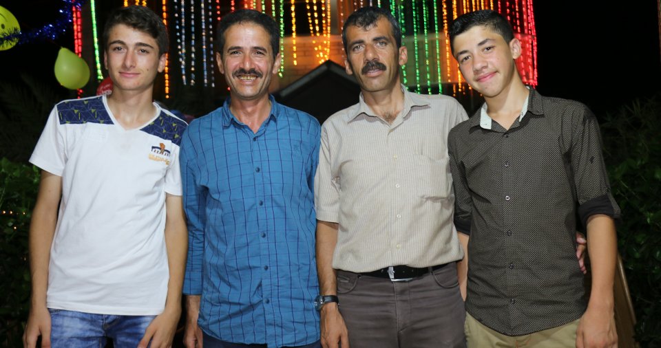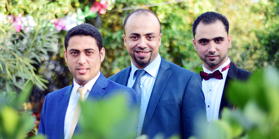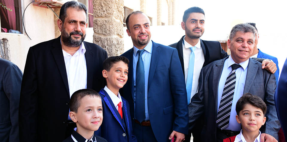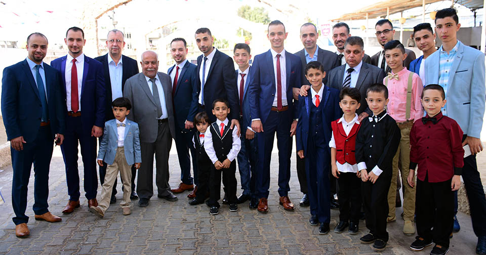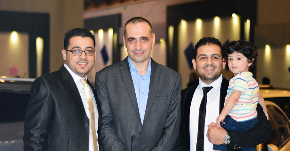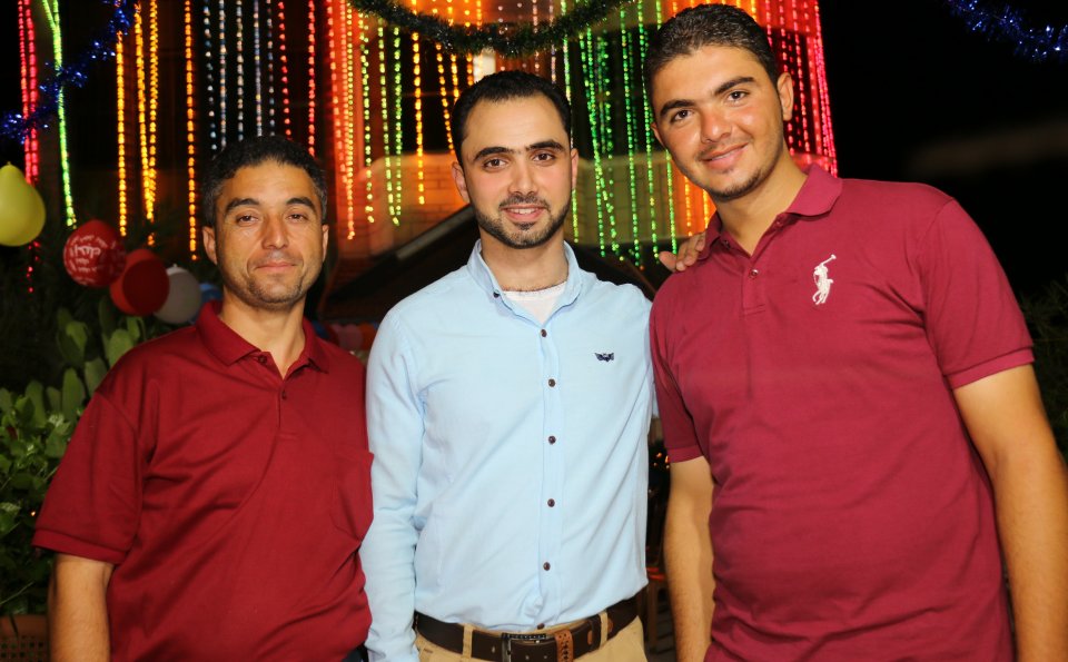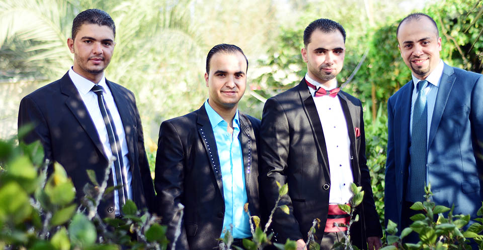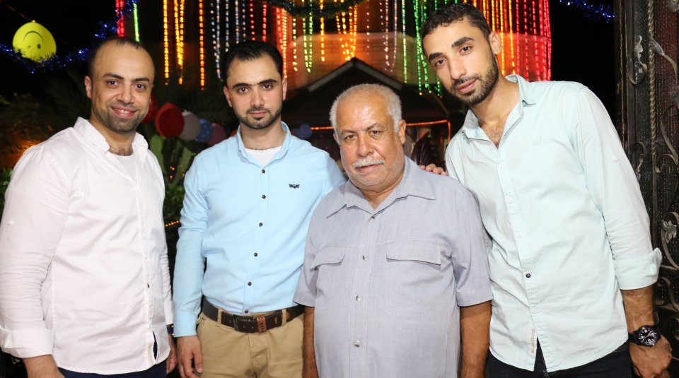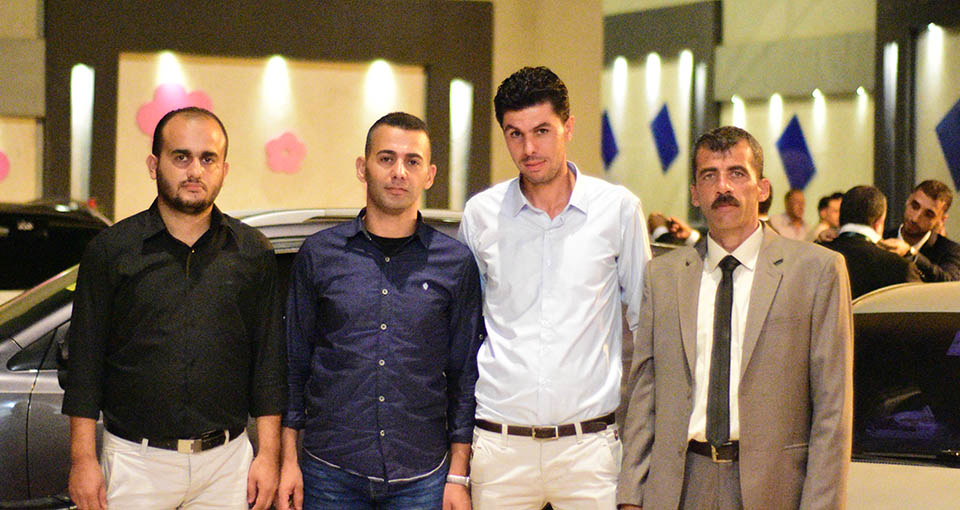 أ. يونس كامل، والد العريس، أ. جواد كامل، العريس، أ. عماد الخزندار(خال العريس)، الحاج كامل حافظ،