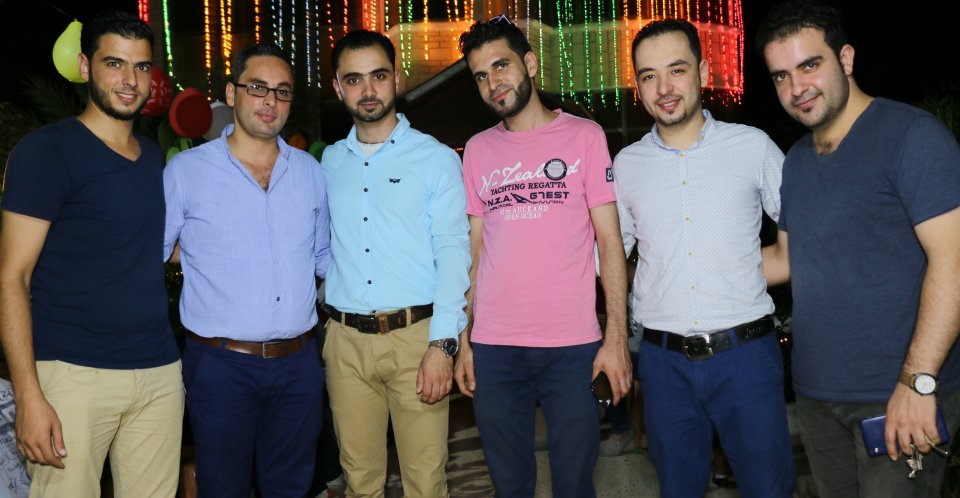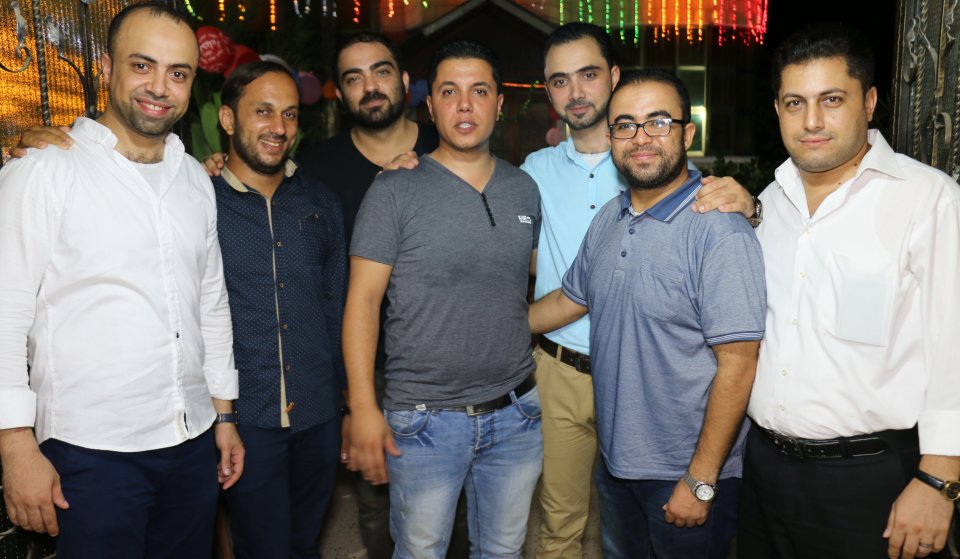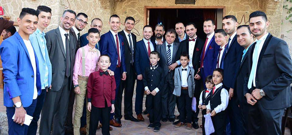 فخري منصف، م. فايز الخزندار، م. جمال، العريس، م. فراس، أحمد، أ. محمد(شقيق العريس)