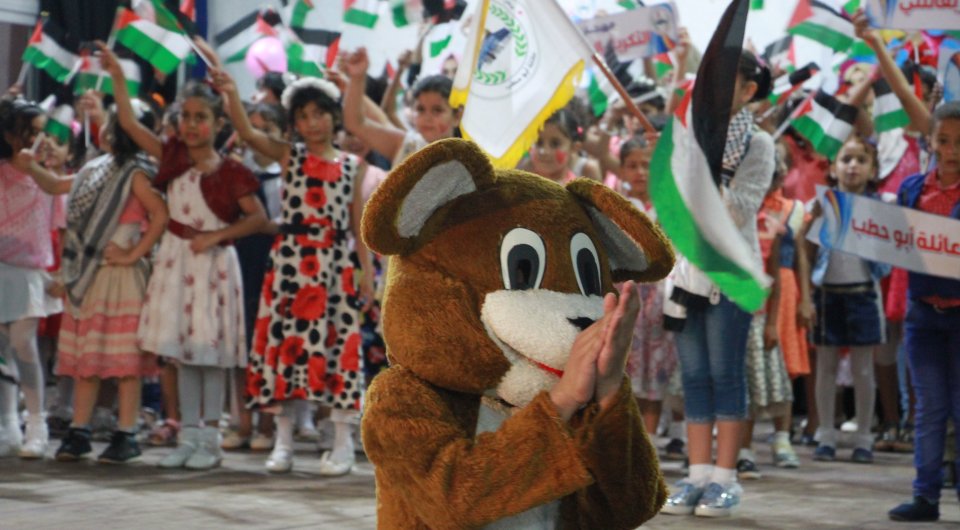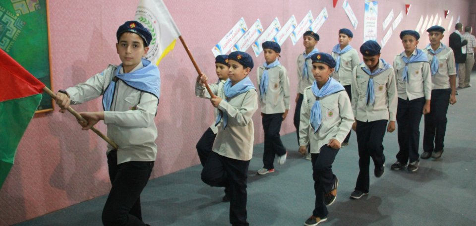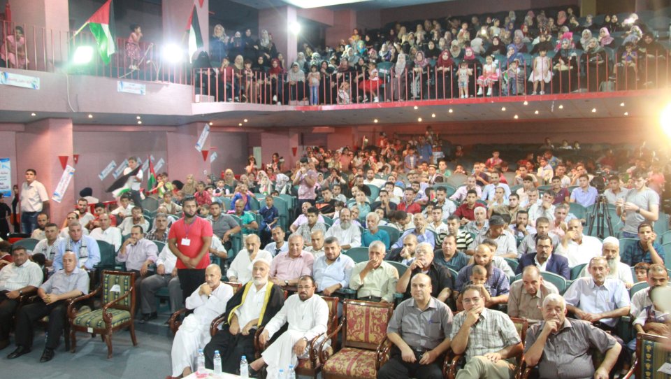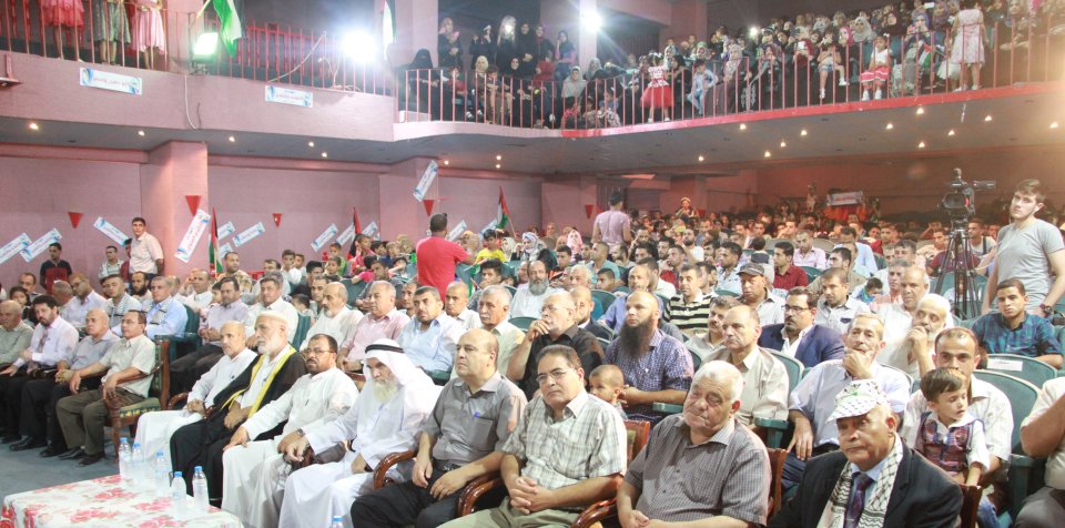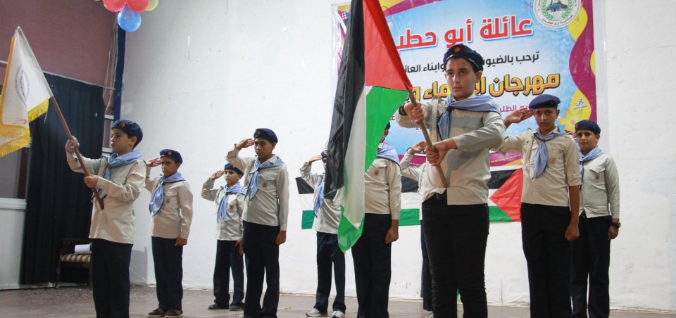 حيث بدأت فقرات الحفل بصعود الطلبة الاوئل المكرمين الى منصة المسرح ملوحين بالاعلام الفلسطينية وشعارات الحفل الخاص بمهرجان الانتماء والتميز , وبعد ذلك قام عريف الحفل الاستاذ/ أشرف سالم بتقديم الشيخ أحمد أبو حطب لقراءة أيات عطرة من القرأن الكريم تلاها السلام الوطني الفلسطيني.