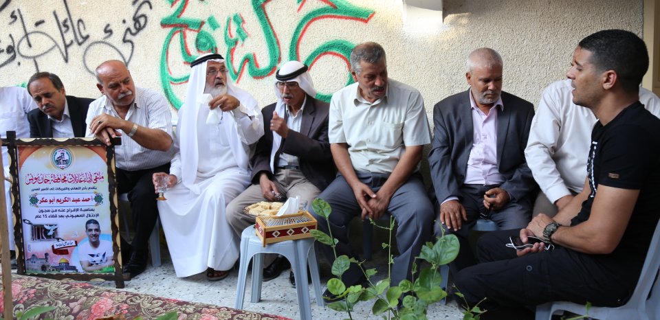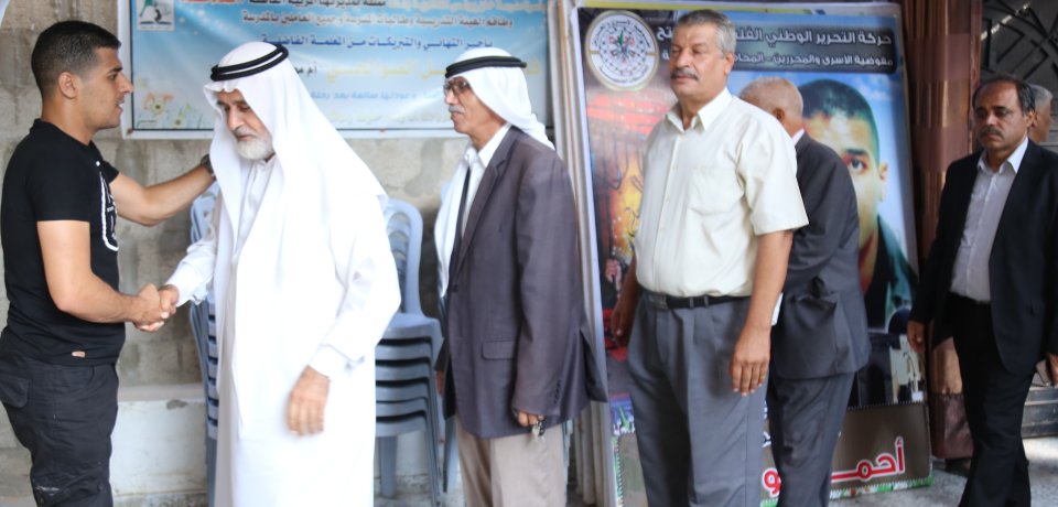 خان يونس - قام وفد من ملتقي أبناء عائلات محافظة خان يونس بزيارة الأسير المحرر أحمد عبدالكريم ابوعكر، بعد أن أمضي فترة إعتقال بسجون الاحتلال دامت خمسة عشرة عاماً، في منزله بحي الامل بمحافظة خان يونس.