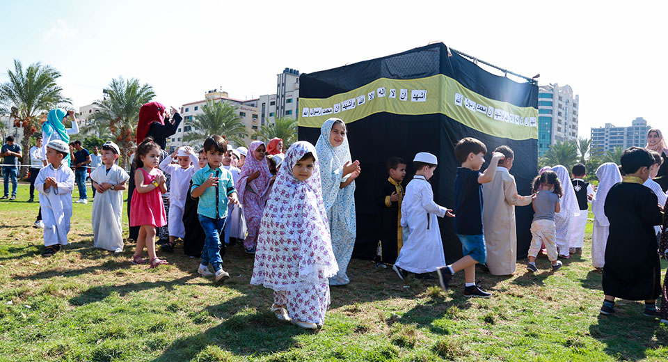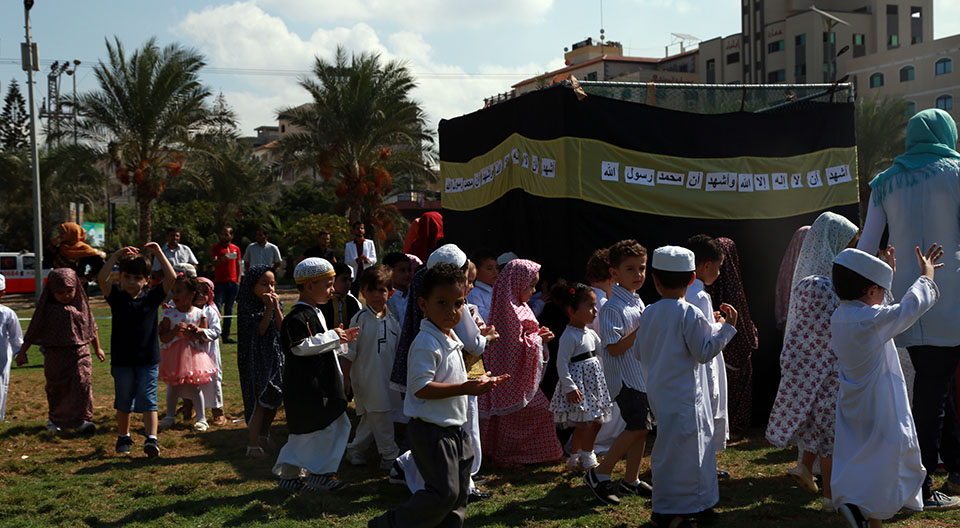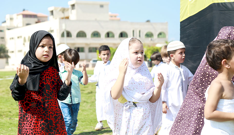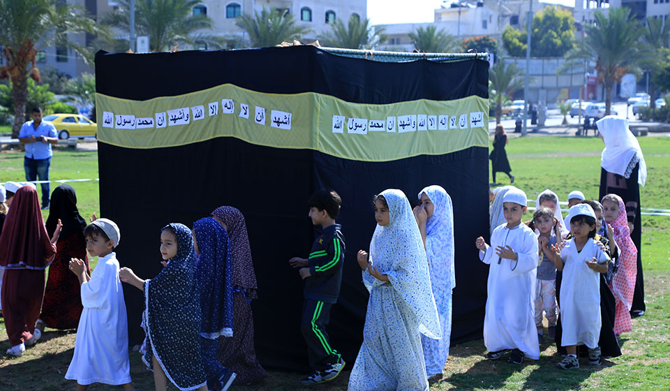 غزة- أرض الكتيبة- الخميس 08-09-2016- تحت شعار أطفالكم أمانة في أعناقنا أقامت الروضة البريطانية في غزة يوما مفتوحاً لتعليم أبنائها الطلبة مناسك الحج والعمرة.