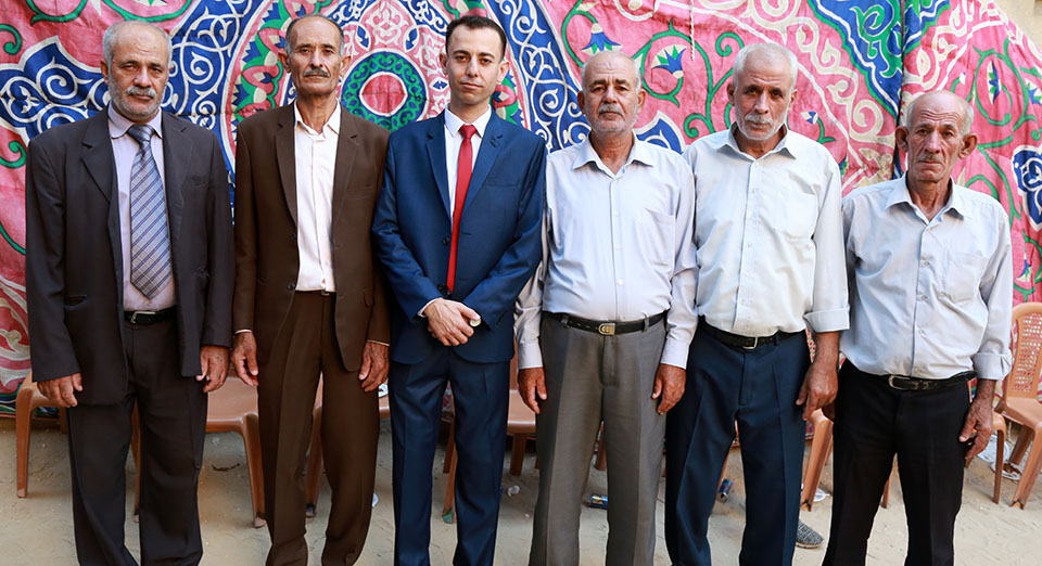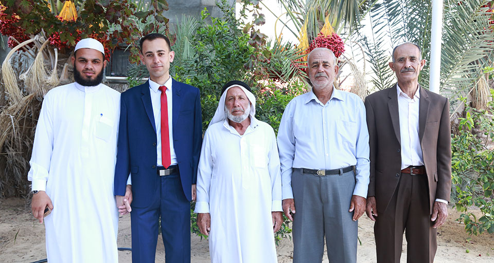 والد العريس، أ.شعبان جابر الأغا(عم العريس)، الحاج أبو حسين النجار(زوج عمة العريس)، العريس، أ.عمر شراب