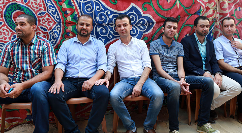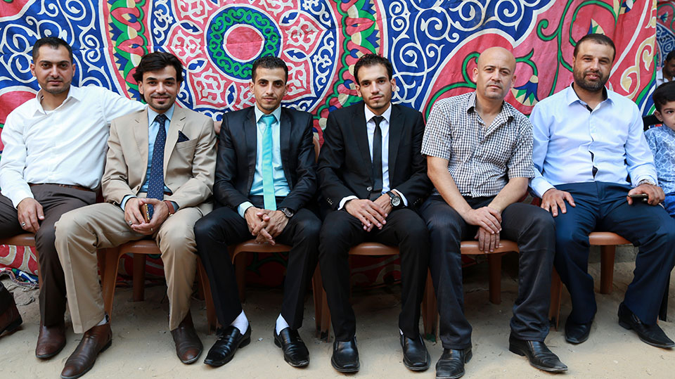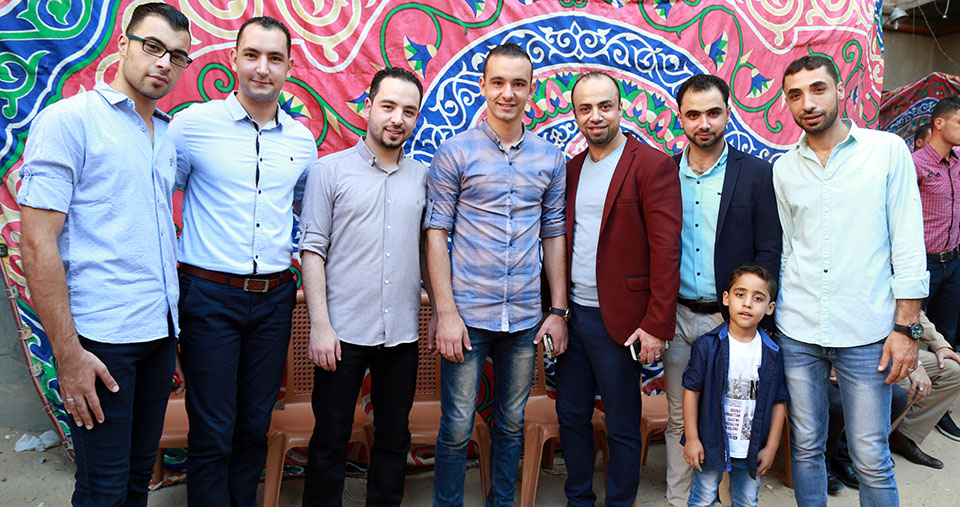 محمد حاتم الأغا، محمد باسم الأغا، إيهاب باسم الأغا (ابناء عم العريس)، والد العريس، أ.محمد(شقيق العريس)، العريس، أ.شريف شعبان الأغا(ابن عم العريس)، أ.محمد صلاح الأغا، أحمد باسم الأغا(ابن عم العريس)