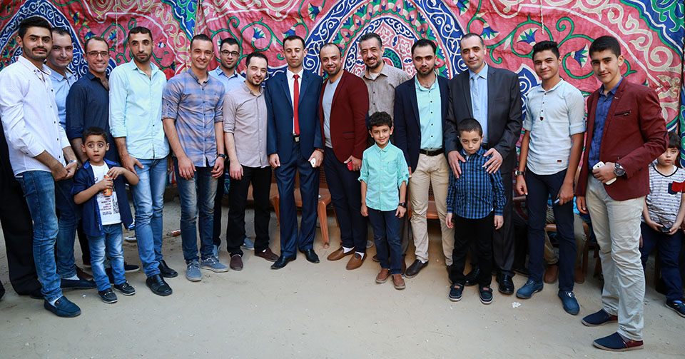 السيد بيان حافظ الأغا، السيد حاتم جابر الأغا وشقيقه أ.باسم (عما العريس)، صبحي نبيل الأغا(ابن خالة العروس)، العريس، أ.حيدر سليمان الأغا، أ.نبيل كمال الأغا(زوج خالة العروس)، أ.محمد حلمي الأغا، أ.عدنان كمال الأغا
