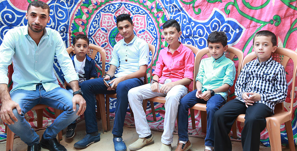 العريس يتوسط والده وأشقاؤه(أ.أحمد، أ.محمد، محمود)