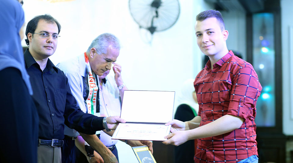 الرئيسة/احتفالات سنوية/حفل تكريم العائلة 2016 المرحلة الثانية المجموعة الثالثة احتفالات سنوية حفل تكريم العائلة 2016 المرحلة الثانية المجموعة الثالثة تاريخ النشر : الأحد | 11-09-2016 | 04:42 8471 حفل تكريم العائلة 2016 المرحلة الثانية المجموعة الثالثة اضغط هنا للتعرف على المرحوم الدكتور خيري حافظ عثمان الأغا يمكنك تلقي أحدث الأخبار أول بأول بانضمامك لإحدى مجموعات الواتساب الخاصة بالعائلة من خلال الضغط هنـا اظهر المزيد