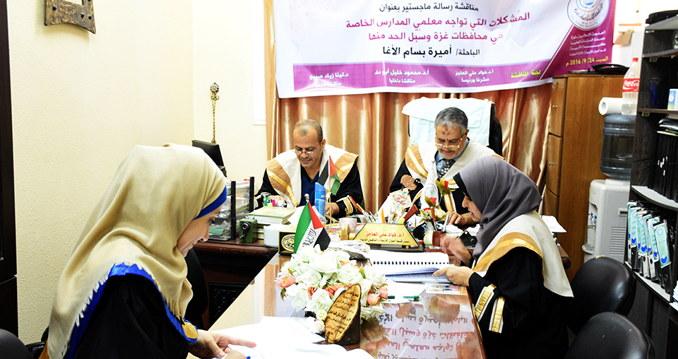 الجامعة الإسلامية- غزة، السبت الموافق 24-09-2016، الباحثة أميرة بسام مصطفى الأغا تنال درجة الماجستير في التربية تخصص إدارة تربوية والتي كانت بعنوان: