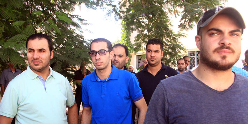 أ. تيسير الفرا، أ. سامي العبادلة، أ. صلاح الأغا ونجله عبدالله