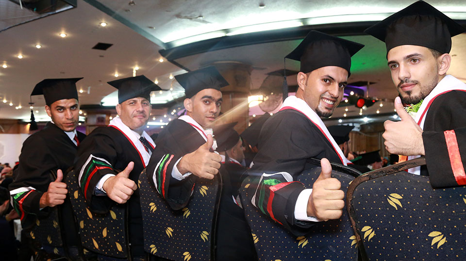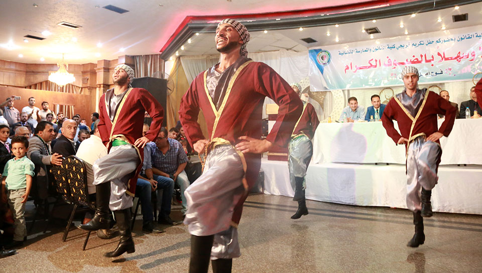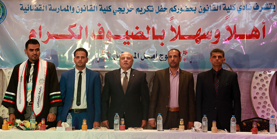 غزة- صالة رويال بلازا- الإثنين 17-10-2016- غزة- إحتفال نادي خريجي القانون والممارسة القانونية، (فوج أمل المستقبل)، وتم في الاحتفال تكريم الطلبة والطالبات من كلية القانون، حيث تم تكريم الطالب عبدالكريم رمضان الأغا والطالب وسام جهاد الأغا، وألف مبارك