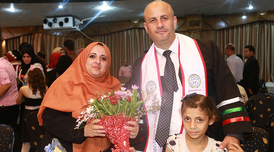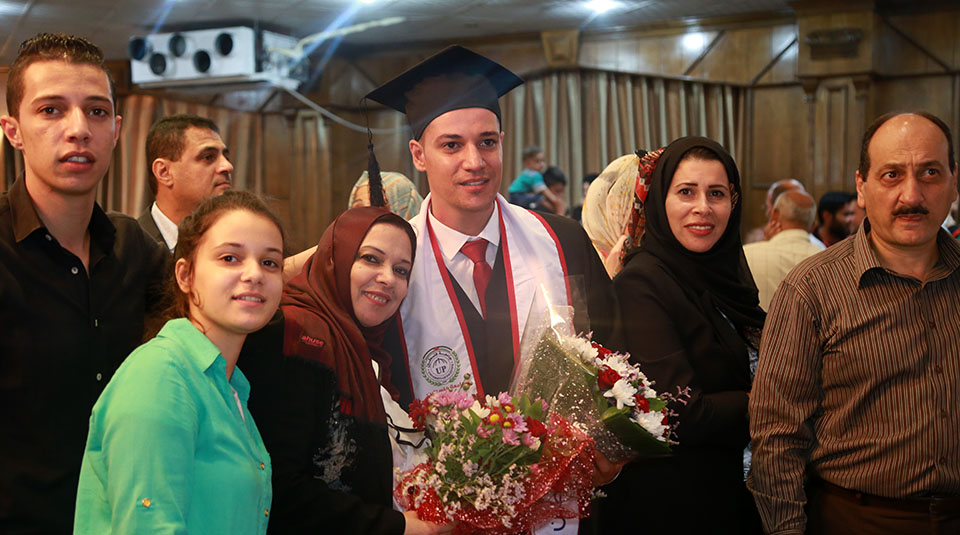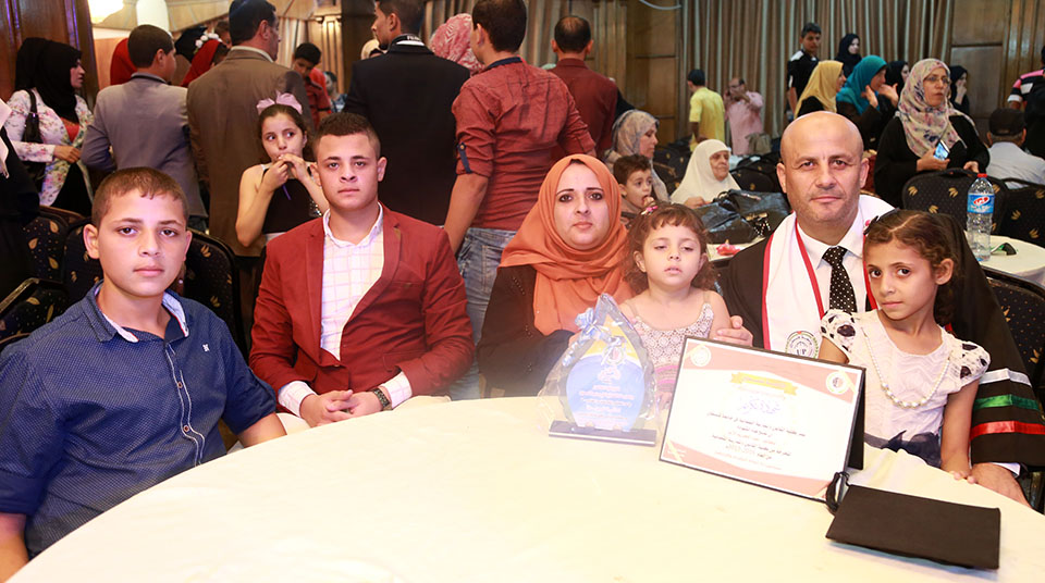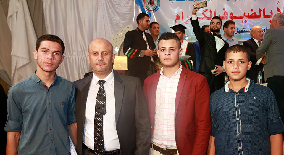 الطالب وسام يتوسط عائلته