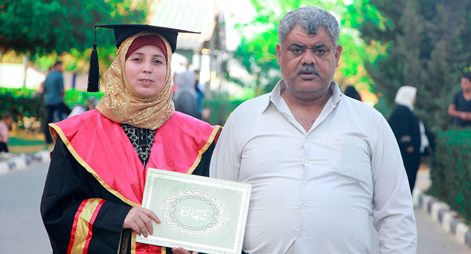 السيد مازن إبراهيم الأغا(زوج الخريجة)، د. نعيم العبادلة، الخريجة