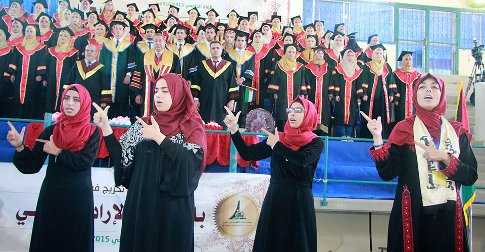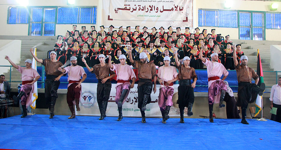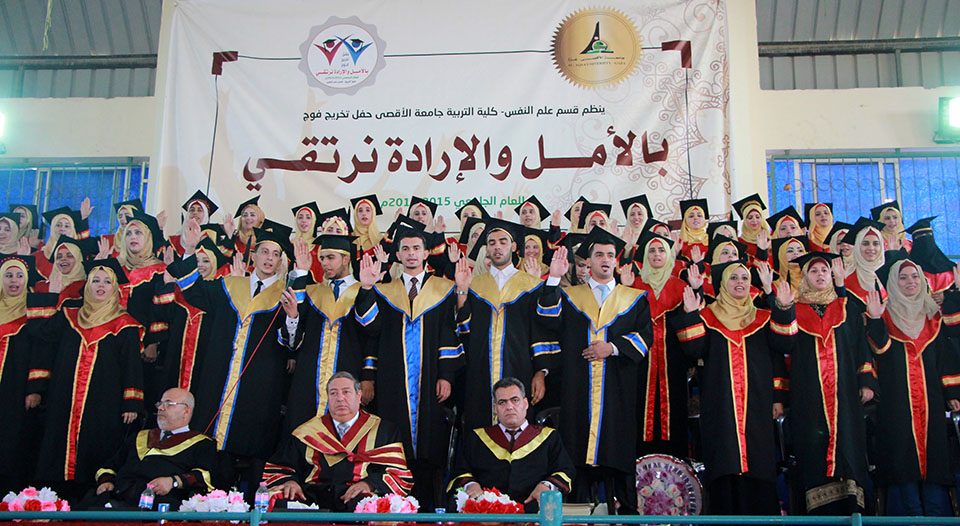 نظم قسم علم النفس- كلية التربية جامعة الأقصى، حفل تخريج فوج بالأمل والإرادة نرتقي، للعام 2015-2016.