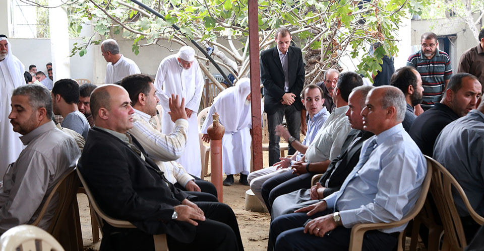 أ. سامي قاسم(ابن شقيقة الفقيد)، الحاج عدنان صالح(ابن ابن خال الفقيد)، الحاج أحمد نايف(ابن ابن خال الفقيد)، الحاج عيس(شقيق الفقيد)، الحاج أمين(شقيق الفقيد)، الوزير محمد رمضان(ابن ابن خال الفقيد)، د. سامي ابراهيم