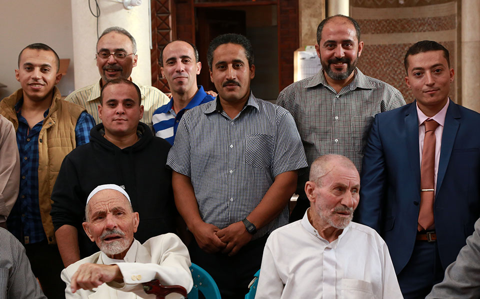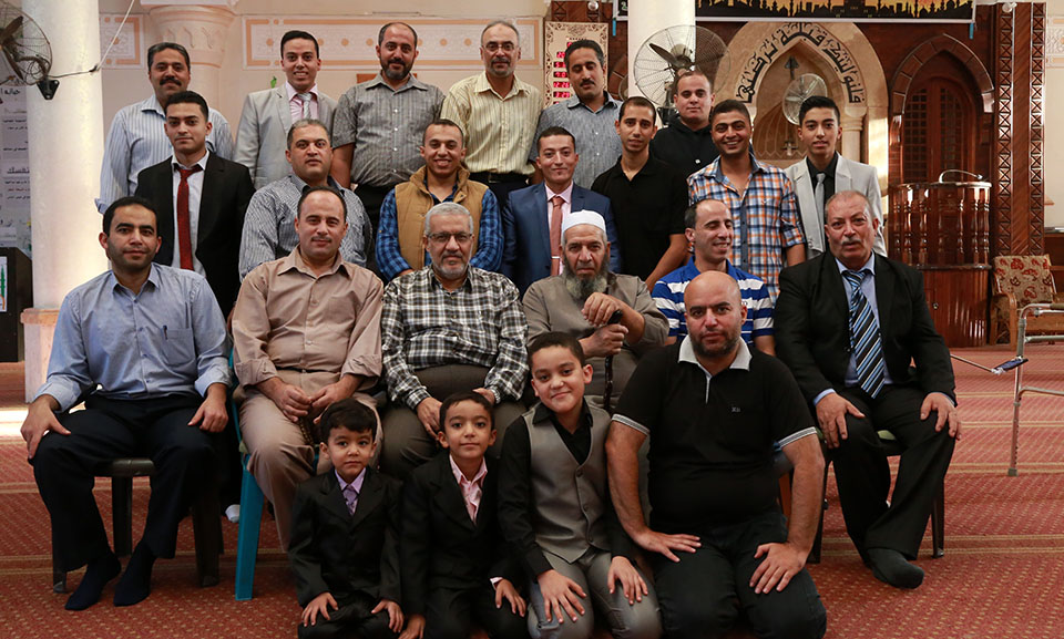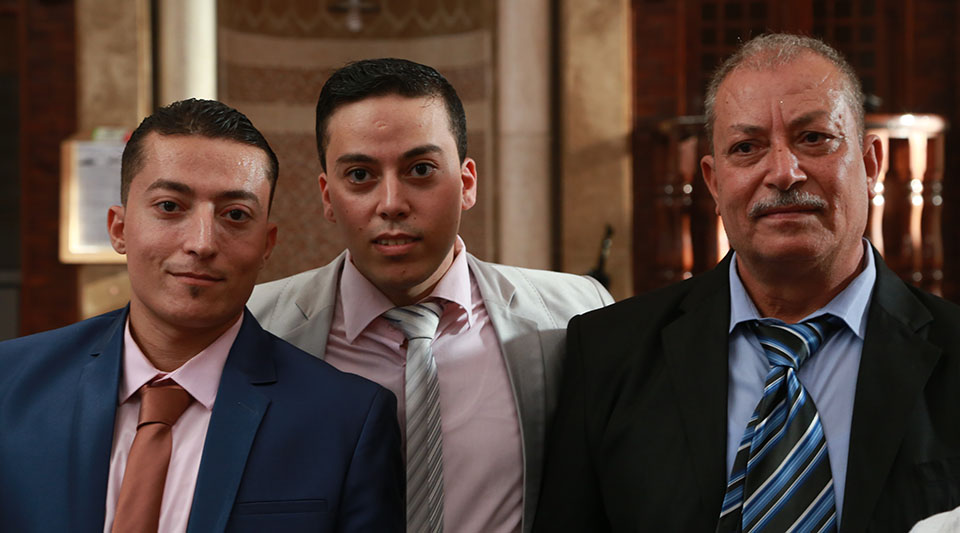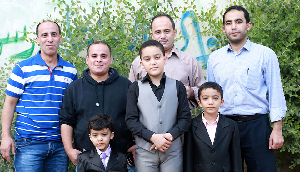 الجالسون: م. سفيان محمد الأغا(إبن خالة العريس) وأنجال شقيقه يحيى ومحمد وعبدالله هاني محمد الأغا، الجالسون على الكراسي: السيد زهير العشي(والد العريس)، السيد حاتم محمود وادي(إبن خالة العريس)، الحاج عبدالكريم عاشور(زوج خالة العريس)، أ. حسين عوني عاشور(زوج خالة العريس)، أ. باسم محمود وادي (إبن خالة العريس)، م. هاني محمد الأغا(زوج شقيقة العريس)، الواقفون: العريس، أ. عوني حسين عاشور(إبن خالة العريس)، د. أيمن عبدالكريم عاشور (إبن خالة العريس)، أ. محمد العشي (شقيق العريس)، سامر(شقيق العريس). الواقفون على الكراسي: عبود وادي، زياد عاشور(ابنا خالة العريس)، عبدالله يوسف عاشور(ابن خال العريس)، أ. عماد عبدالكريم عاشور(إبن خالة العريس)، م. أحمد العشي (شقيق العريس) أ. إياد عبدالكريم عاشور (إبن خالة العريس).