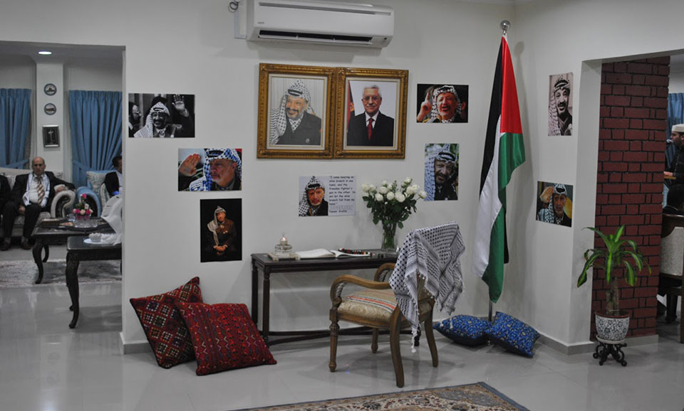 و قد تم عرض فيديوهات و صور للشهيد القائد الرمز المؤسس الرئيس ياسر عرفات، تضمنت اهم المحطات في حياته و نضاله التاريخي، و قد تزين البيت الفلسطيني بالعلم الفلسطيني و صور الشهيد ياسر عرفات و الصور التي جمعته مع خليفته الرئيس محمود عباس، الذي يسير على دربه و خطاه.