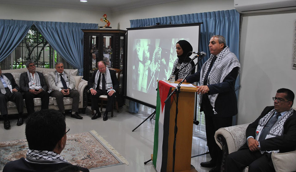 و قد ألقى داتو مصطفى يعقوب، المسئول بحزب أمنو الحاكم في ماليزيا، كلمة بهذه المناسبة، تطرق خلالها لحياة القائد الرمز الشهيد الرئيس ياسر عرفات، بكوفيته التي كانت رمزا للقائد و تجسيدا للنضال الفلسطيني على مر العقود، حيث كانت تربطه علاقات قوية مع ماليزيا و شعبها، الذي طالما قدم الدعم و المساندة للشعب الفلسطيني و قضيته العادلة، و استذكر مصطفى يعقوب علاقته بالشهيد الرئيس ياسر عرفات و مواقفه الصامدة، نحو مواجهة المحتل و المتآمرين على الشعب الفلسطيني، و أكد على عمق العلاقات الماليزية الفلسطينية التاريخية، التي أسسها الشهيد القائد ياسر عرفات، و واصل بها من بعده الرئيس محمود عباس، و عبر مصطفى عن اعتزاز بلاده و حزب أمنو بتلك العلاقات، معربا عن امله في تحقيق هدف إقامة الدولة الفلسطينية المستقلة و عاصمتها القدس الشريف.